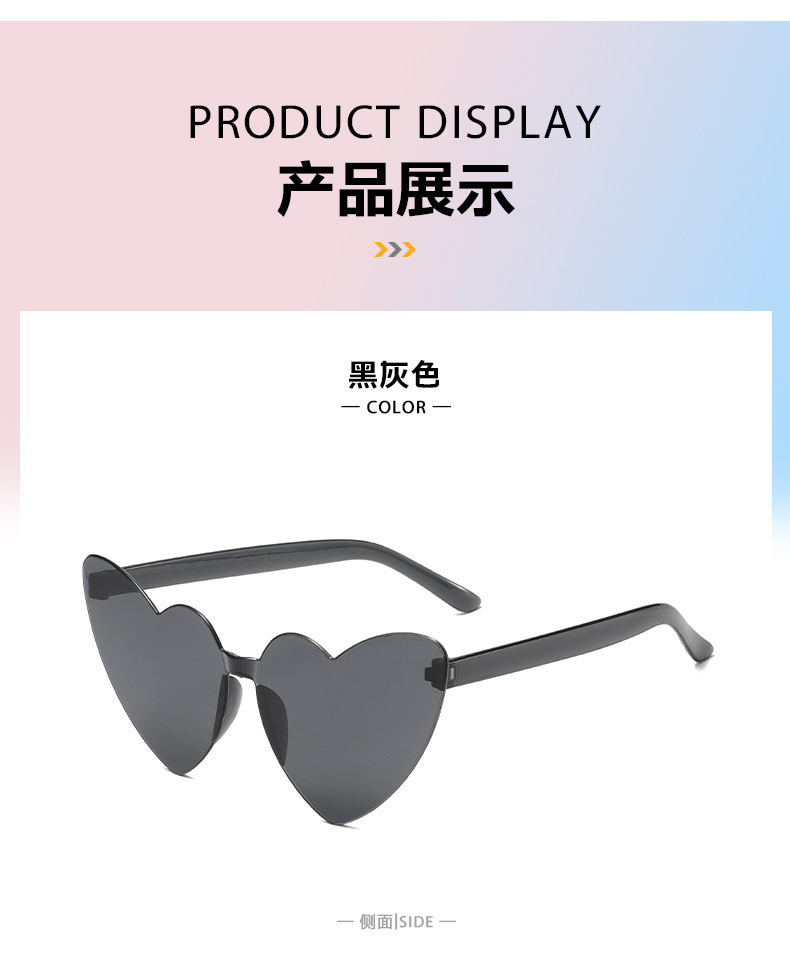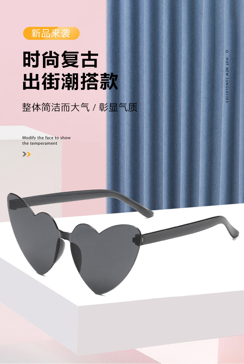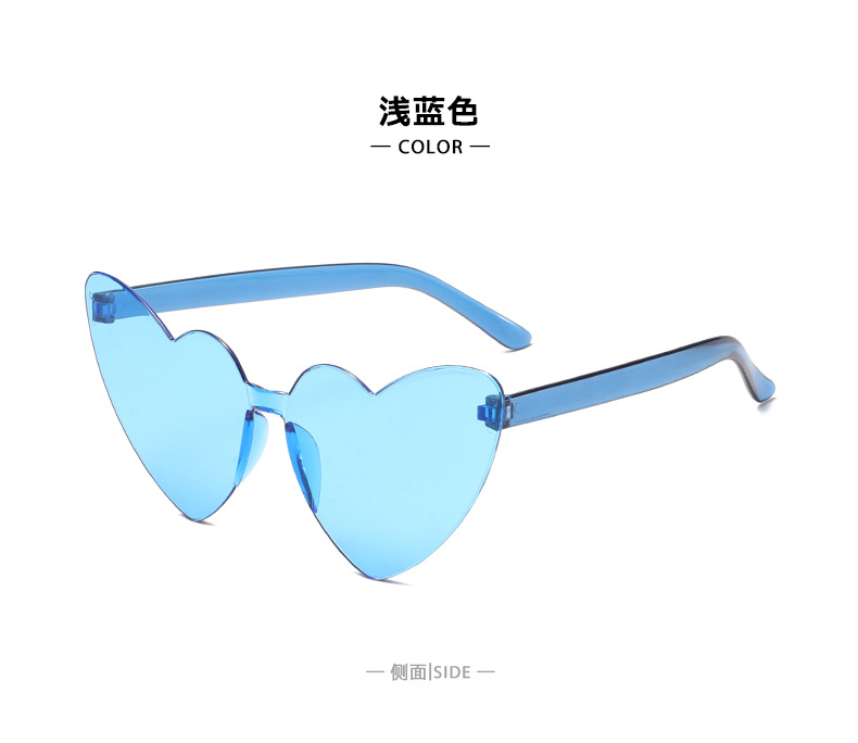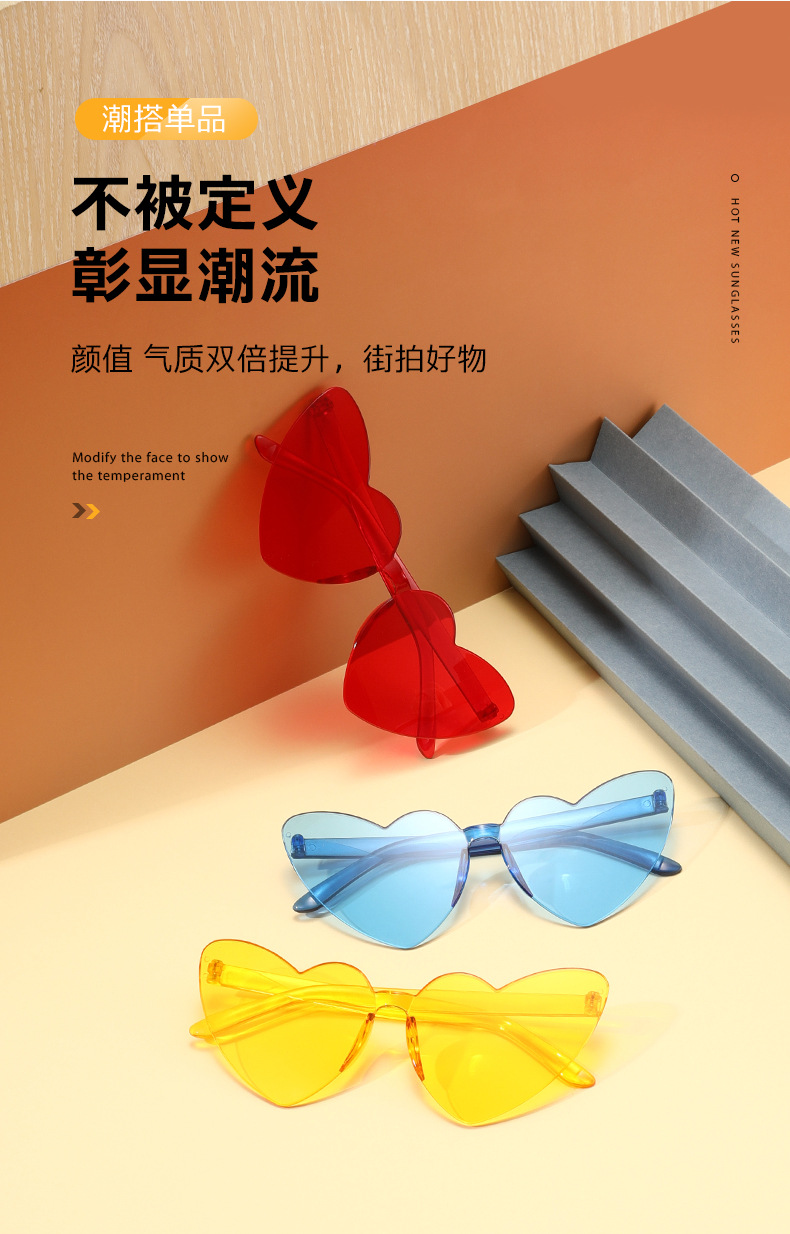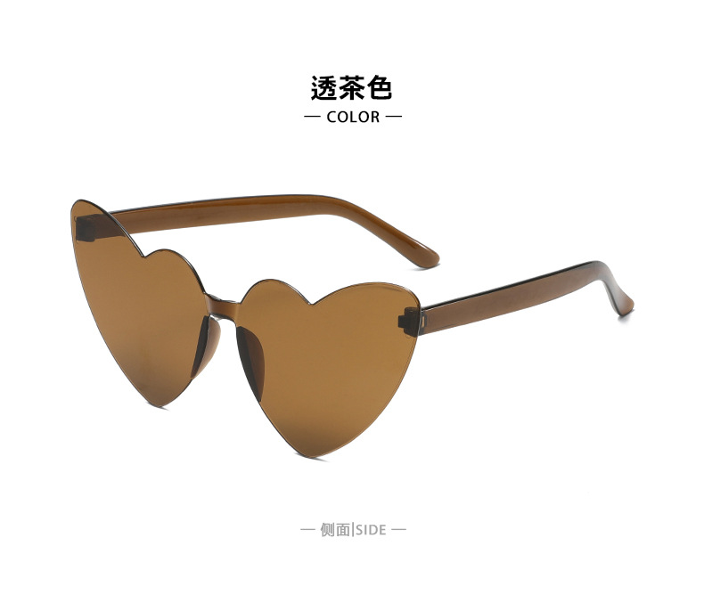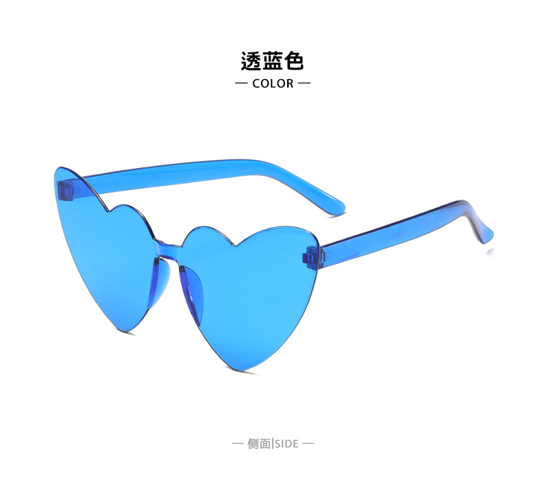 남성과 여성을 위한 투명 젤리 컬러 러브 선글라스, 복숭아 하트 선글라스, 유럽과 미국의 하트 모양의 원피스 선글라스
