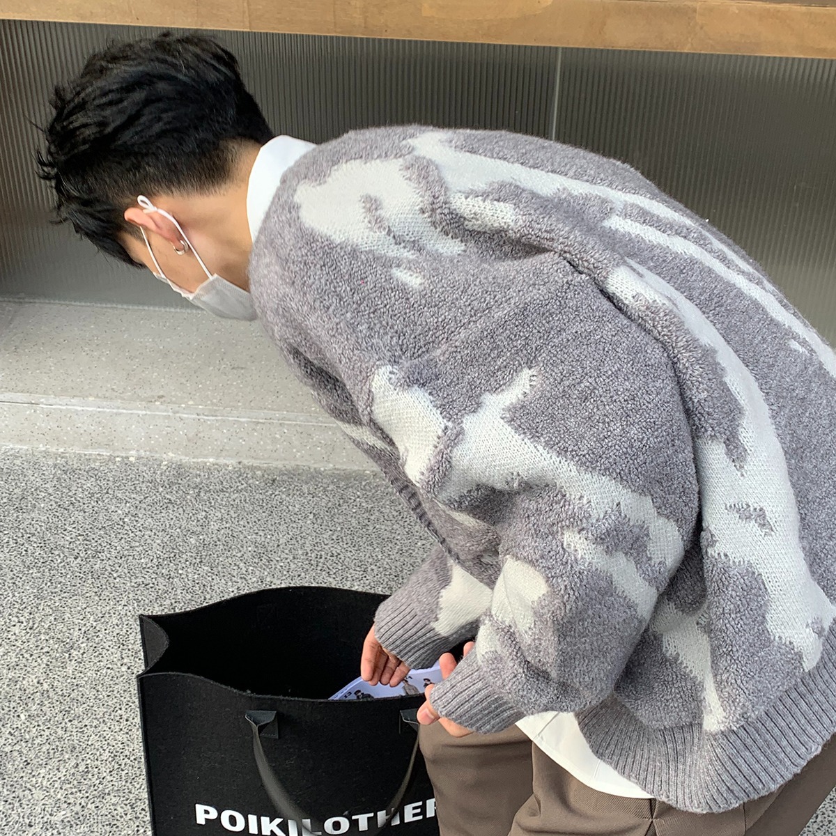 남성과 여성을 위한 아메리칸 레트로 플록 브이넥 가디건 스웨터 트렌디 브랜드 루즈 레이지 스타일 남성용 다용도 인 심플 스웨터