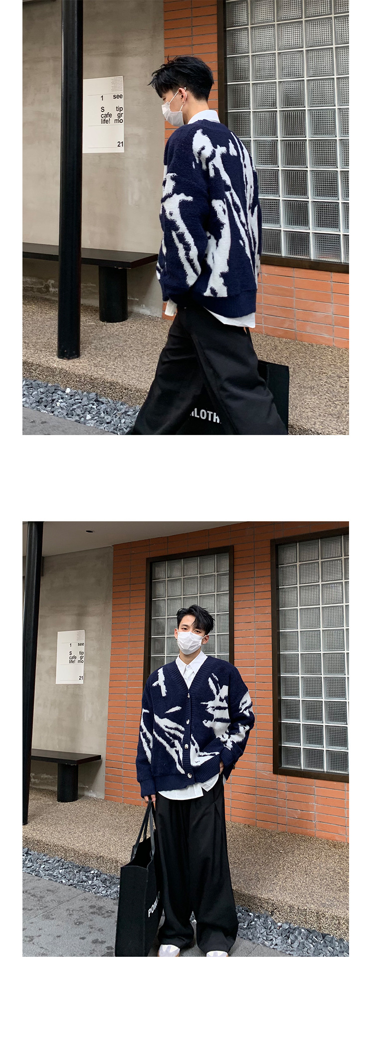 남성과 여성을 위한 아메리칸 레트로 플록 브이넥 가디건 스웨터 트렌디 브랜드 루즈 레이지 스타일 남성용 다용도 인 심플 스웨터스토어 가기