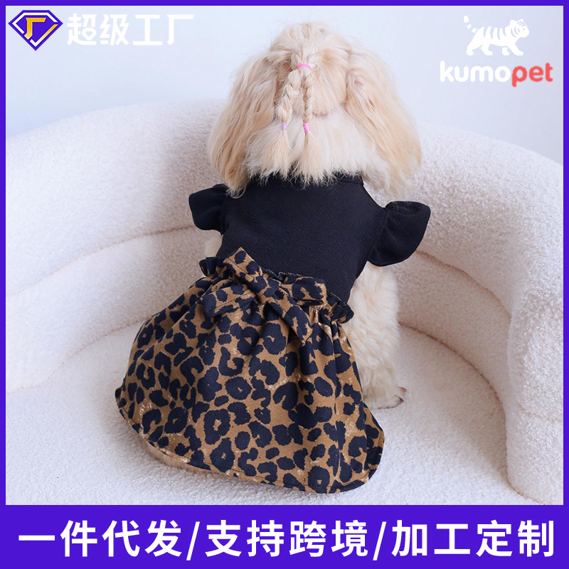 원피스 레오파드 프린트 꽃봉오리 스커트와 동일한 스타일의 리본, 사계절 착용 가능한 고양이와 강아지 의류, 공장 직영 애완견 의류스토어 가기