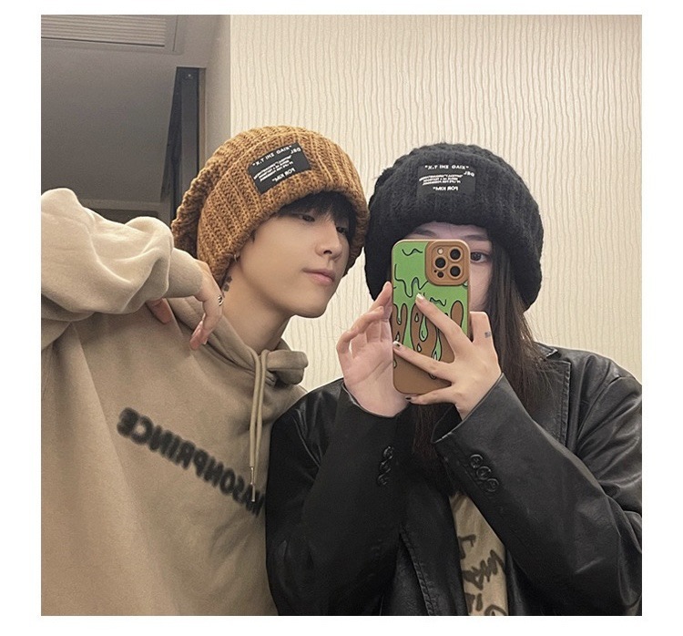 겨울 커플 니트 모자 콜드 햇 올 매치 따뜻한 느슨한 큰 머리 얼굴 작은 남자와 여자는 Ins 스타일스토어 가기