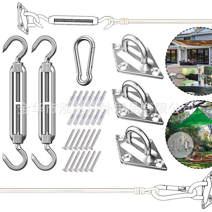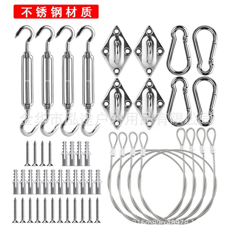 양산 돛 액세서리 삼각형 사각형 그늘 그물 304 스테인레스 스틸 다이아몬드 도어 버클 스프링 후크 와이어 로프 키트