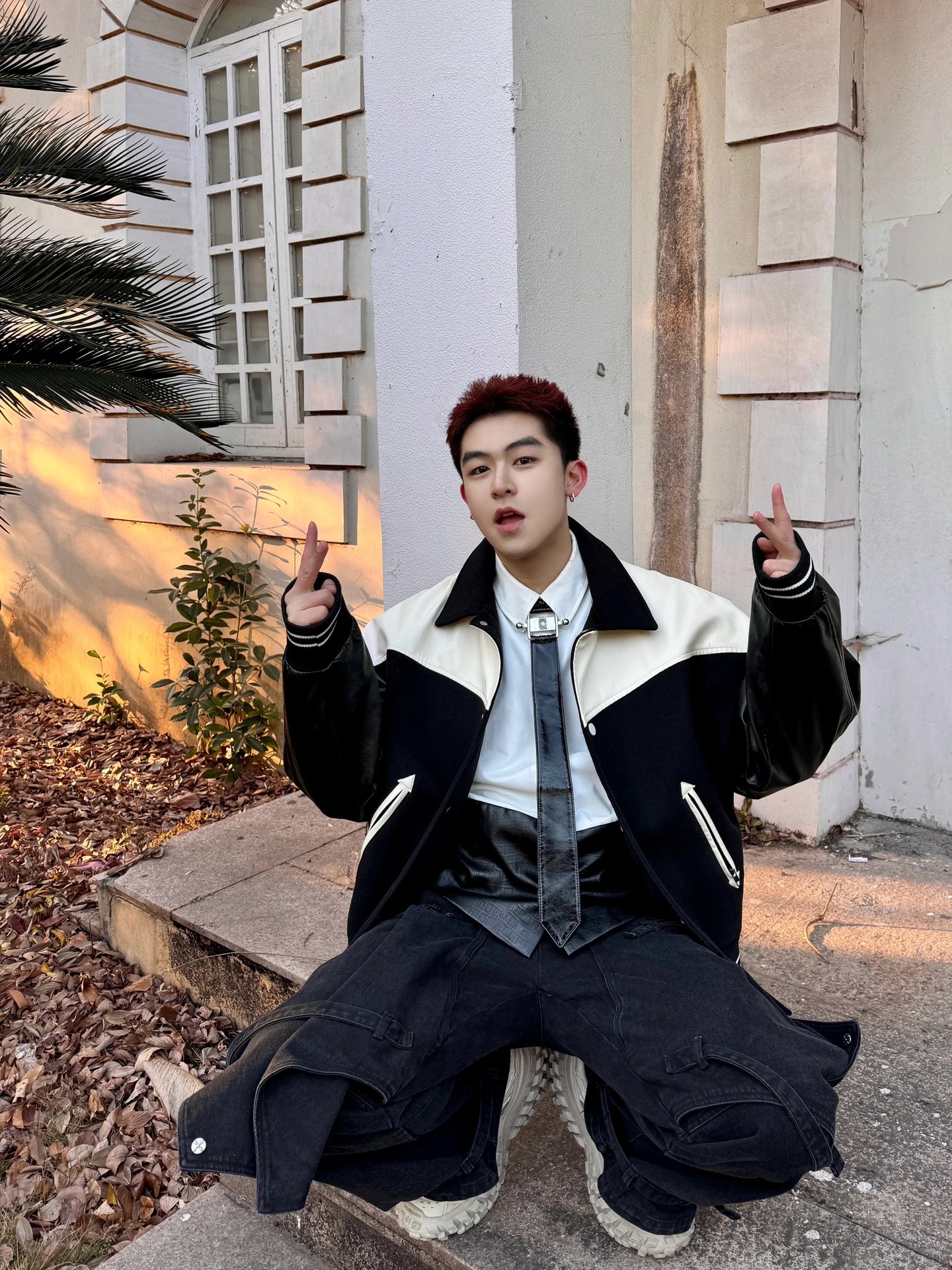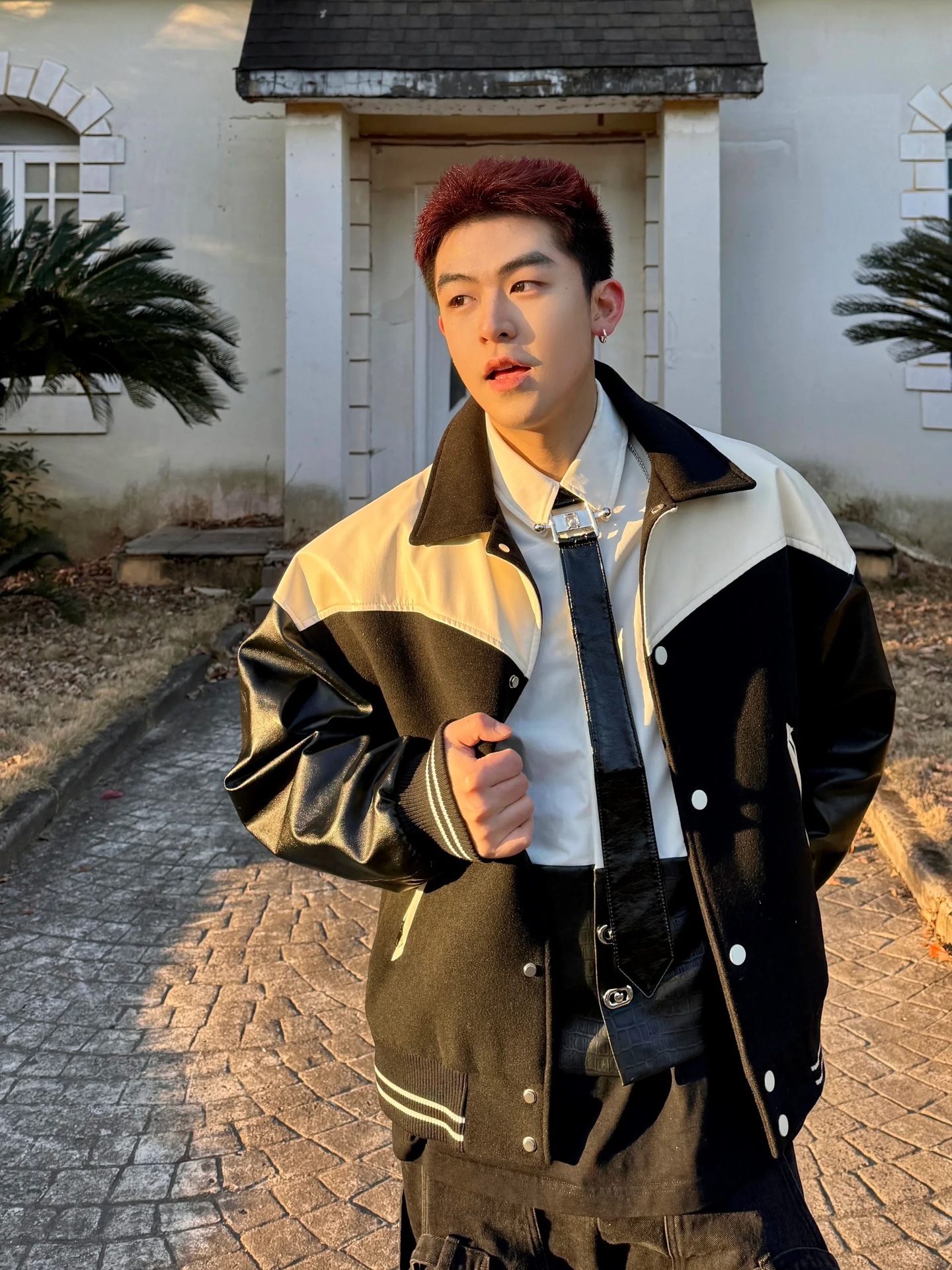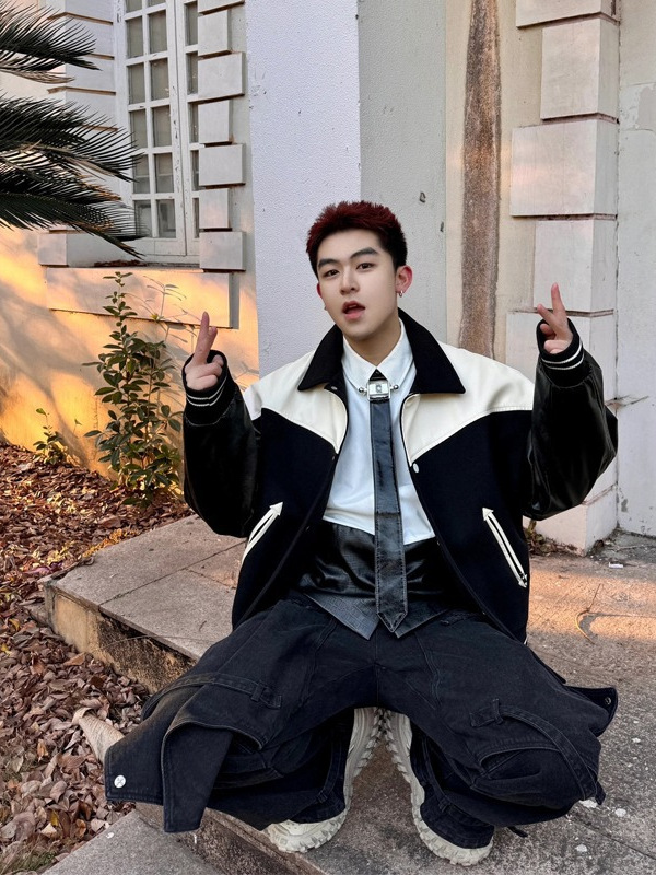 흑백 스티칭 재킷 남자 봄과 가을 미국 스타일 어깨 패드 폭격기 재킷 하이 엔드 센스 플럼 피안 핸섬 야구 세트