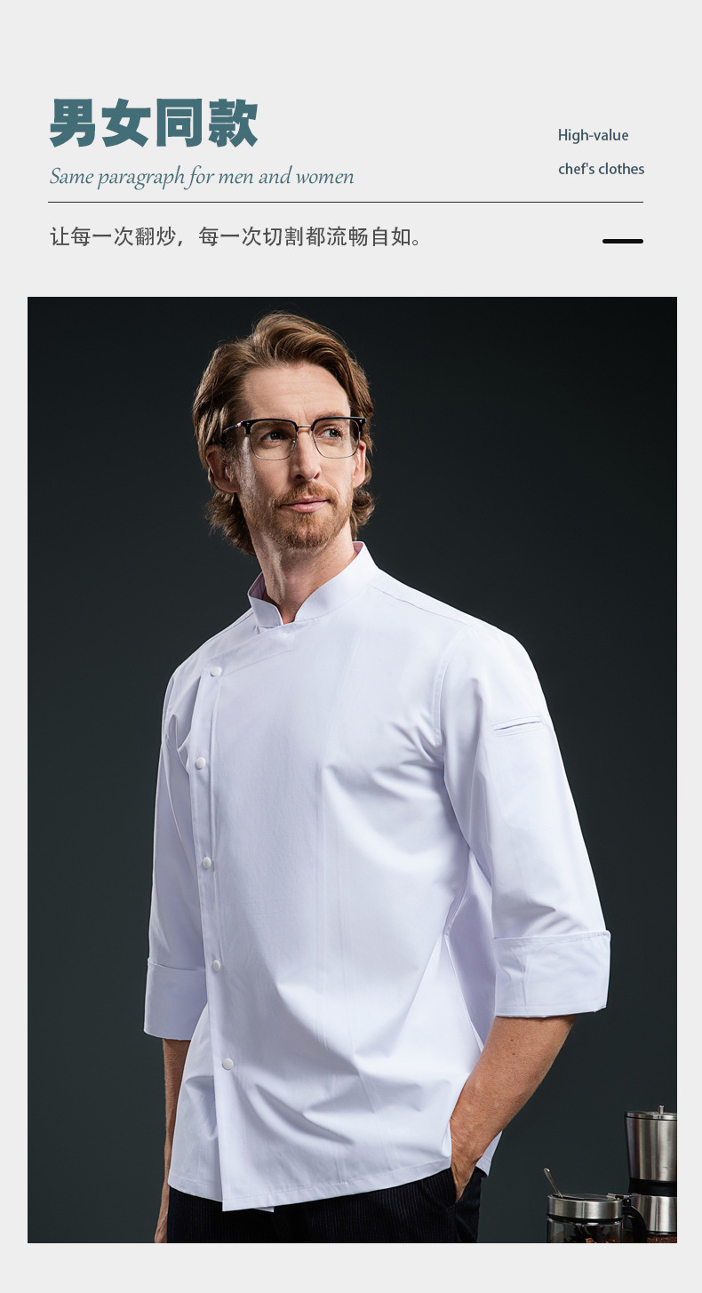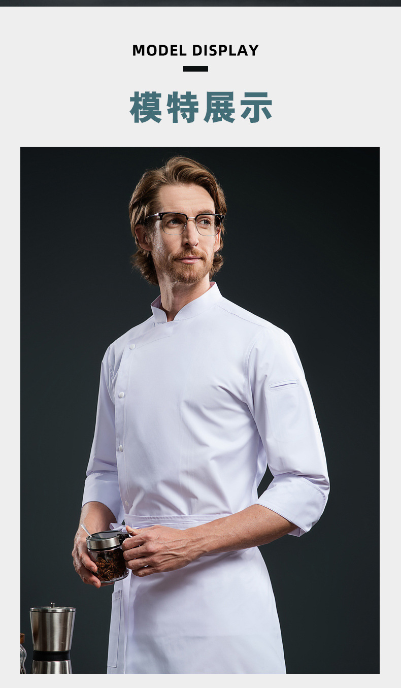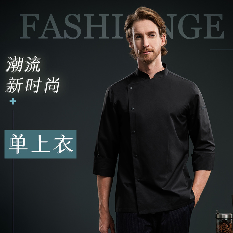 高档餐厅餐饮厨师工作服长袖男女酒店食堂后厨秋冬厨师服工装西餐