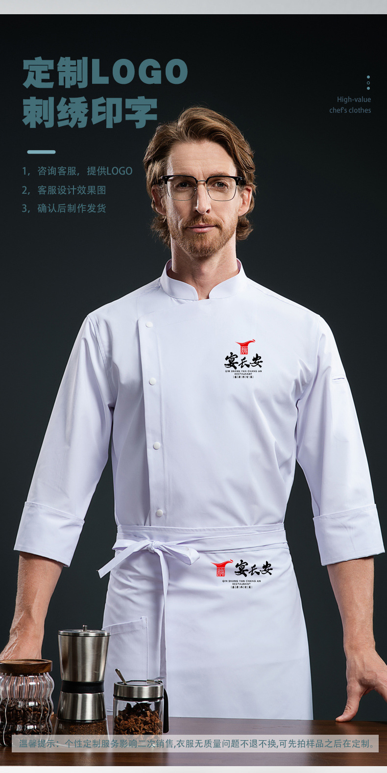 高端厨师工作服长袖男秋季餐饮高级酒店餐厅饭店厨房总厨新式冬装