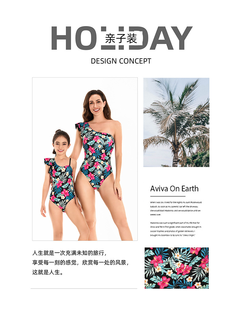 유럽과 미국의 부모-어린이 수영복 가족 착용 새로운 어머니-딸 비치 바지에 찔린 허리 수영복 도매 인쇄 2024스토어 가기