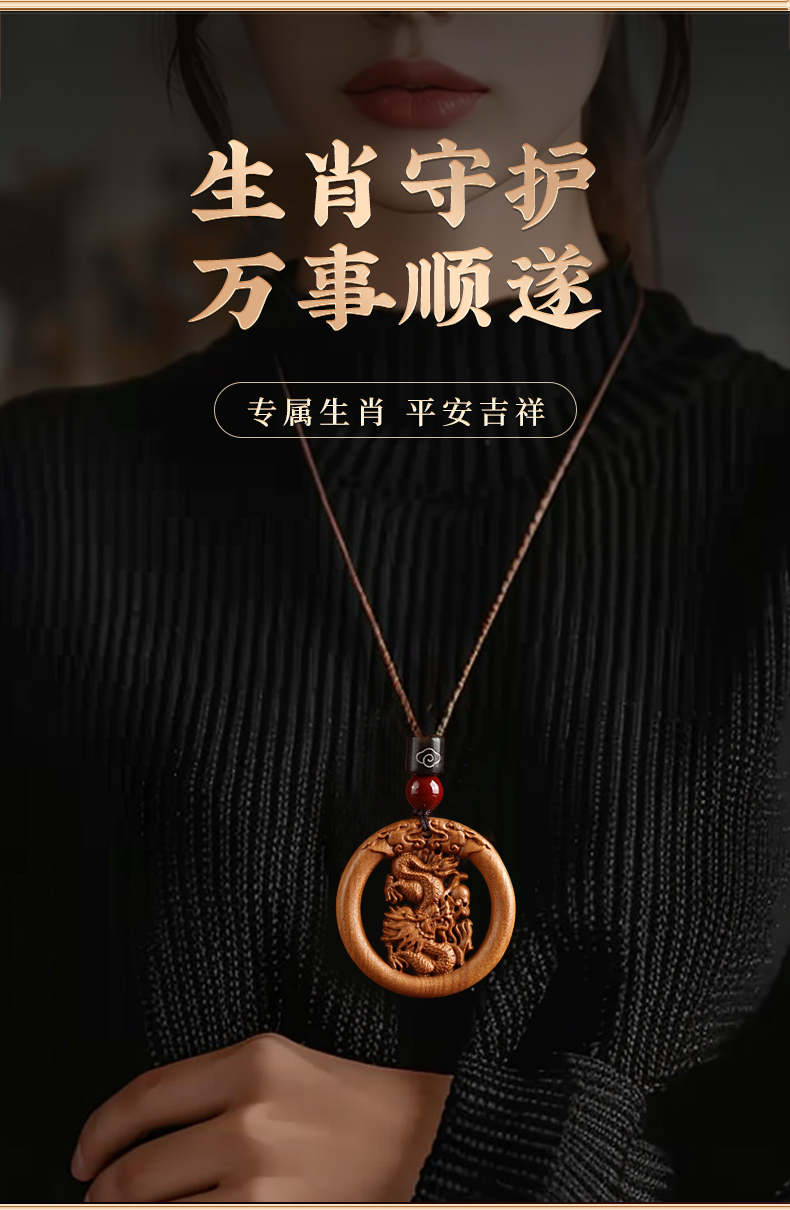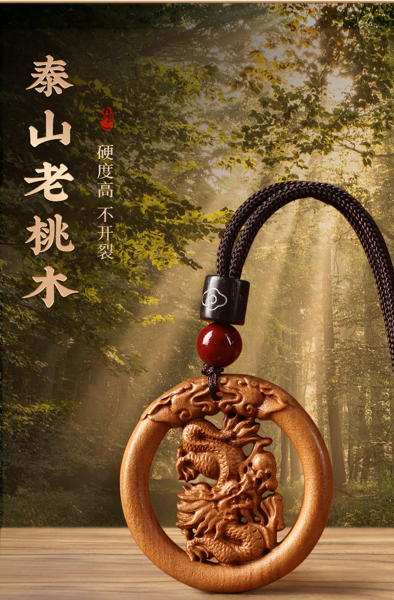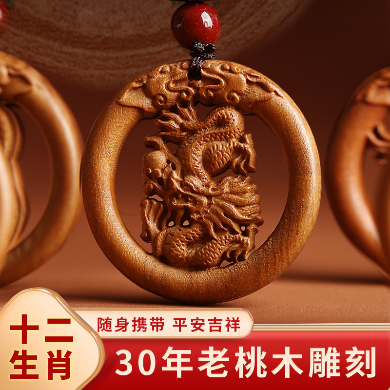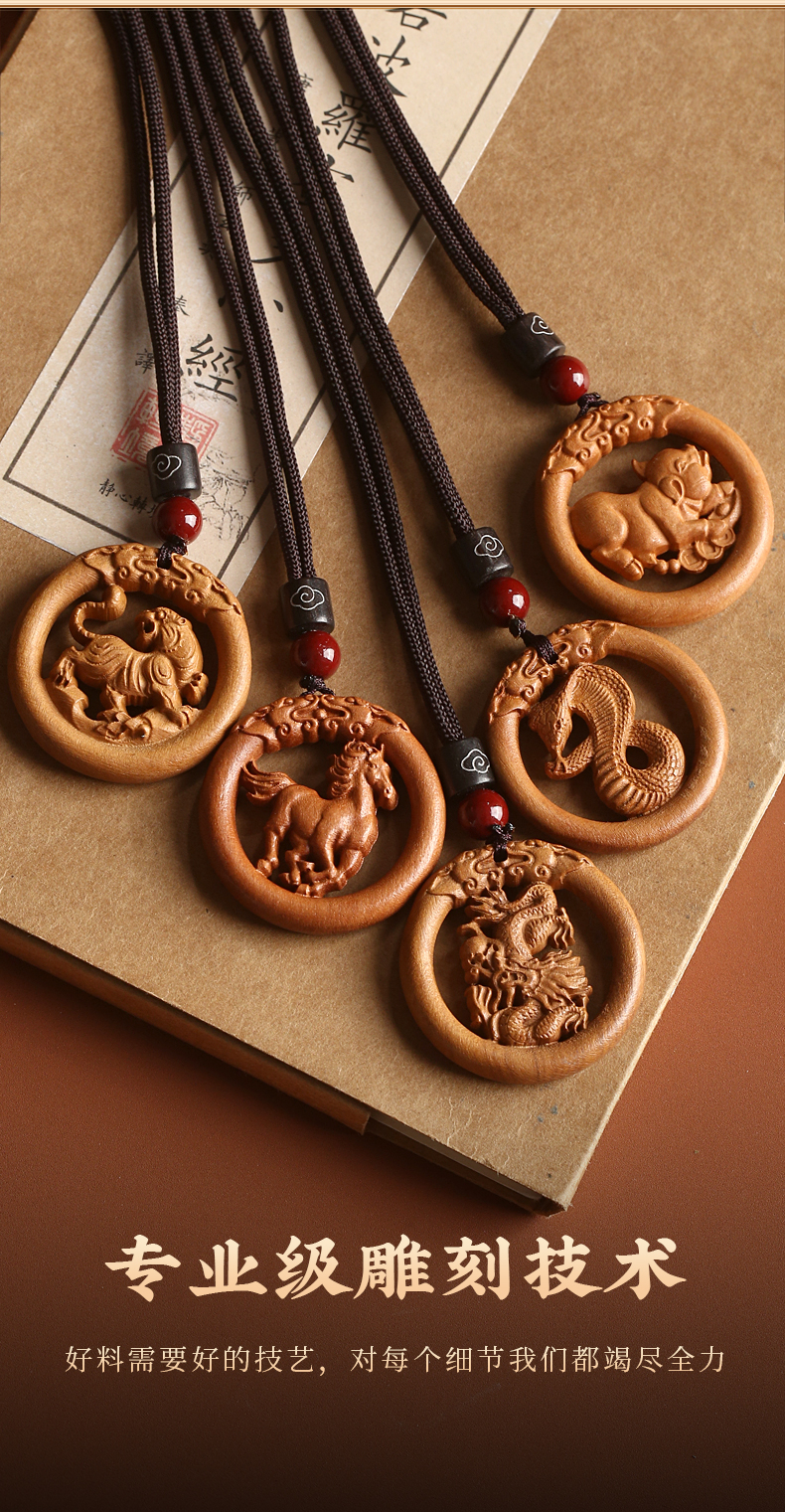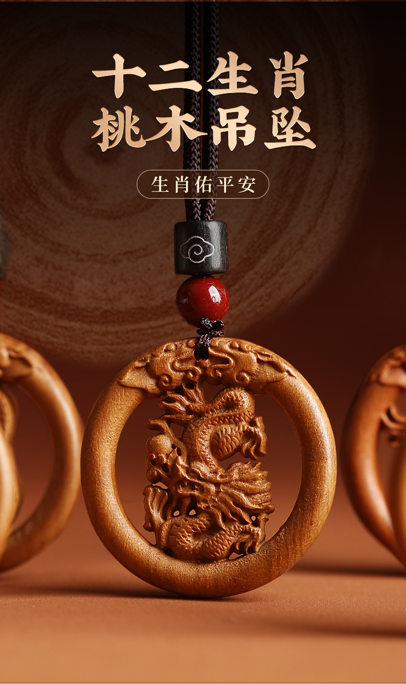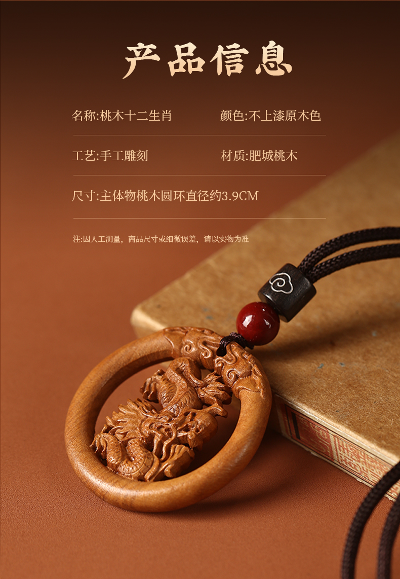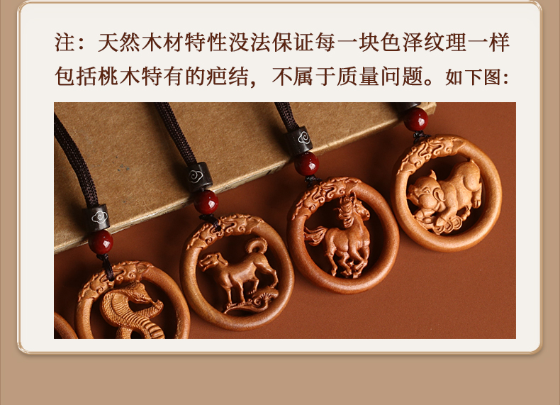 복숭아 나무 조디악 펜던트 쥐 Ox 호랑이 토끼 용 뱀 말 양 원숭이 돼지 복숭아 나무 조디악 샹윤 목걸이 매달려 비문