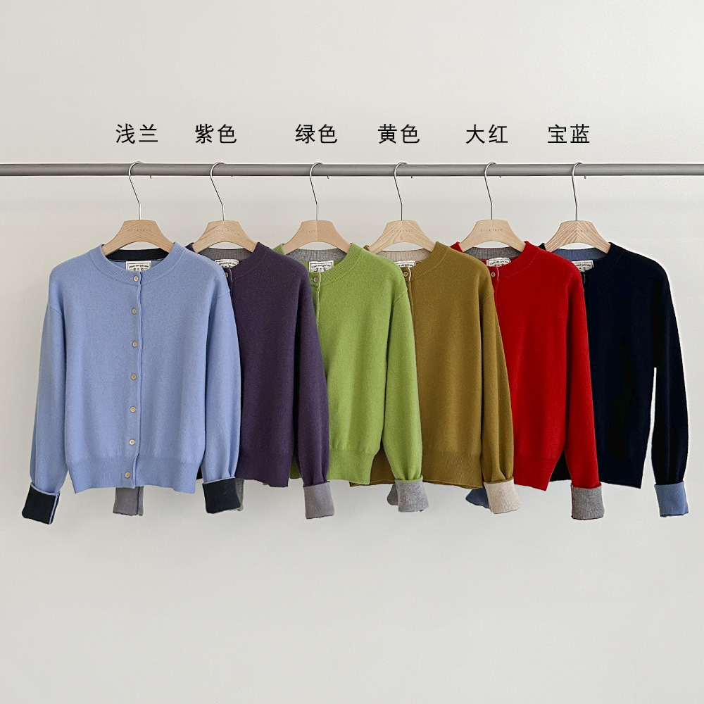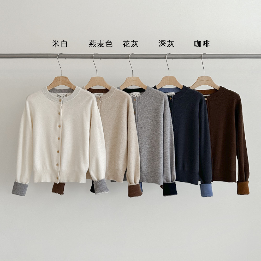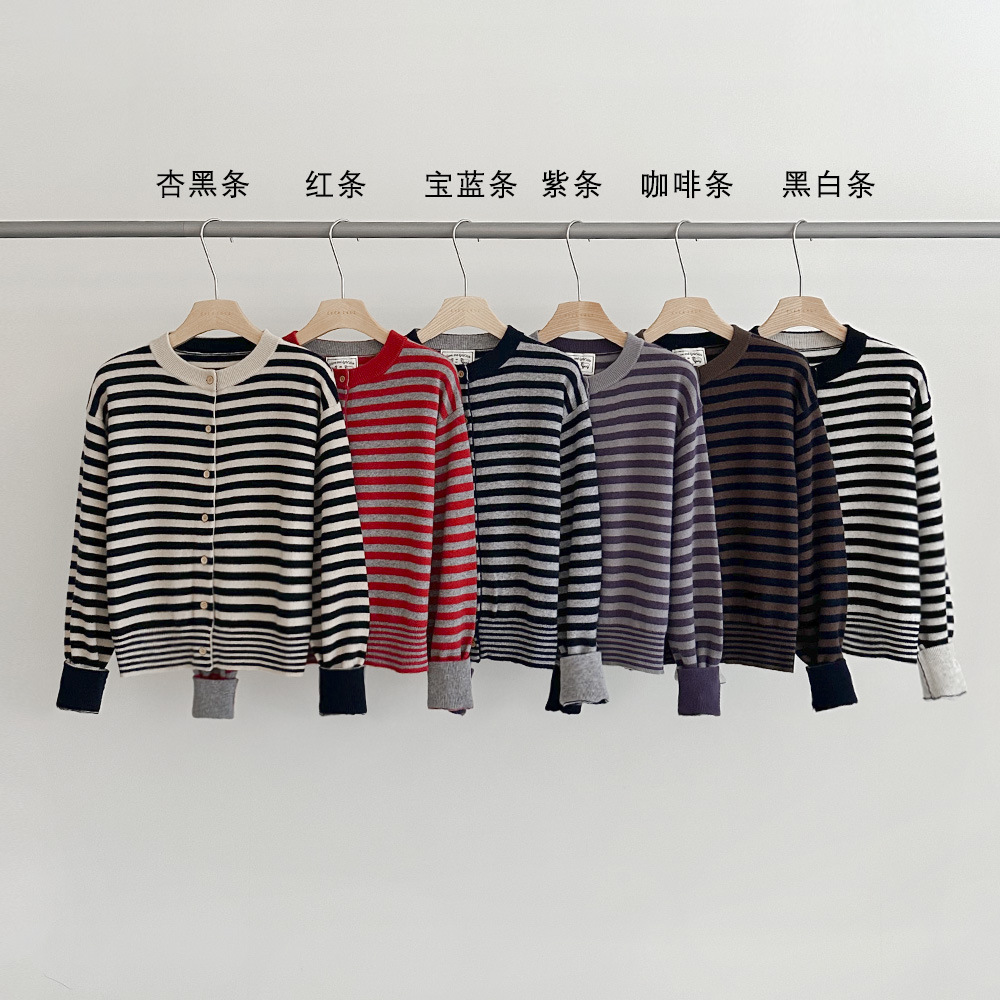 【18가지 색상 중 추천】100% 울 가을 한국 스타일 카디건 니트 스웨터 스트라이프 여성 긴팔 코트 65516