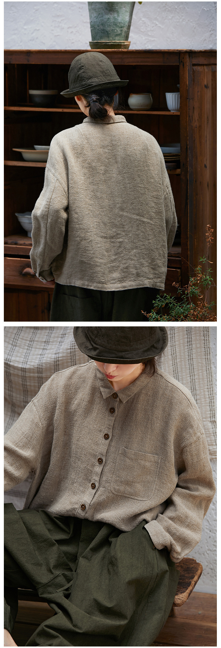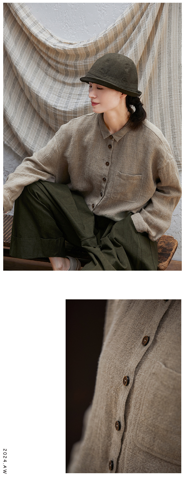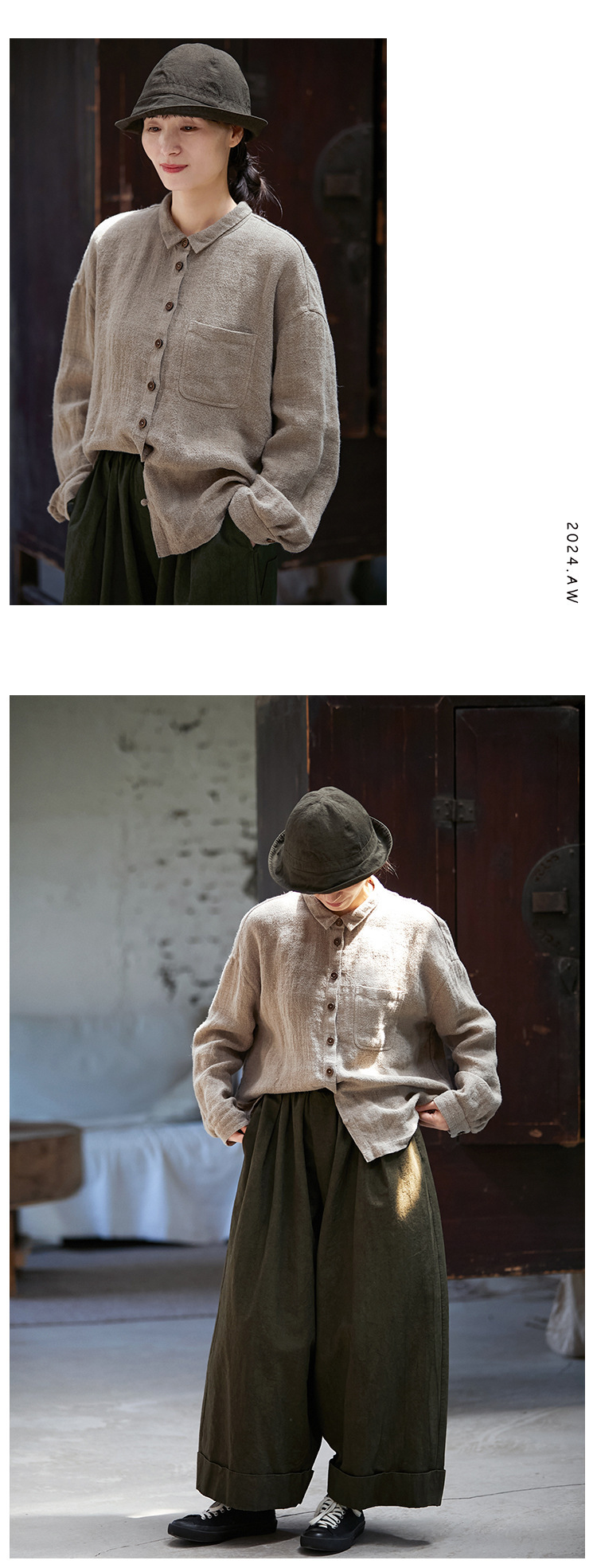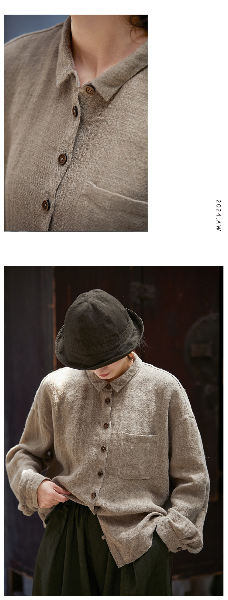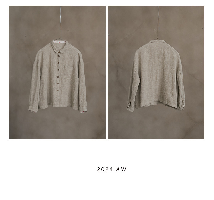 2025 봄 와비사비 잔디와 나무 레인 듀 린넨 희귀 원사 클래식 캐주얼 다목적 공예 루즈 셔츠 여성용스토어 가기