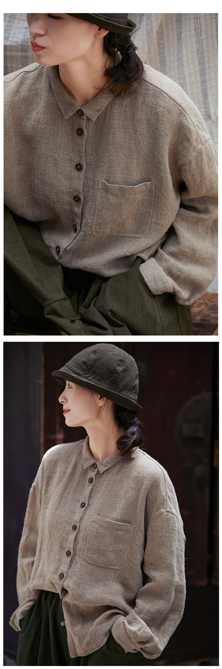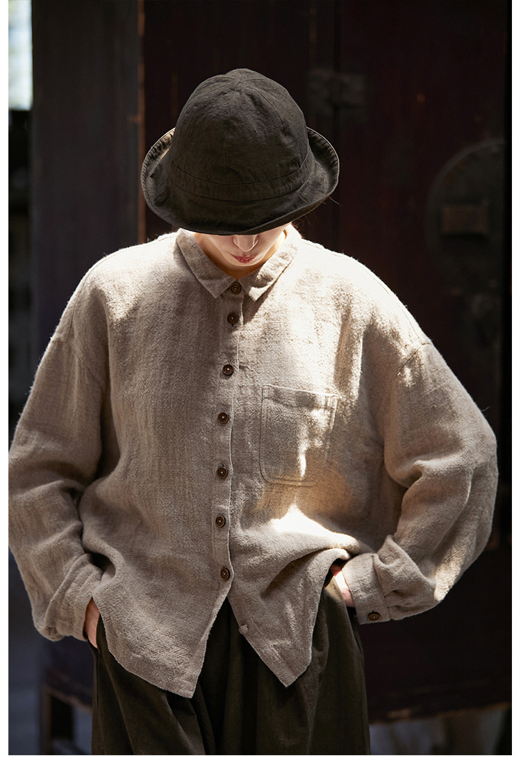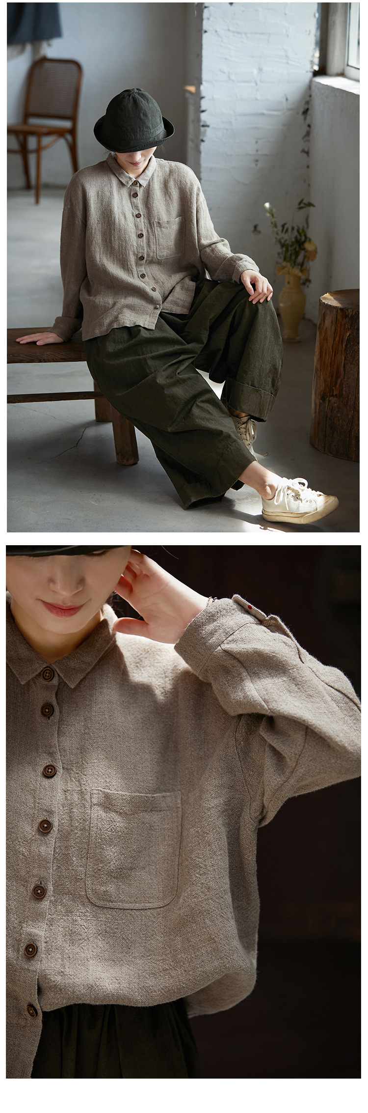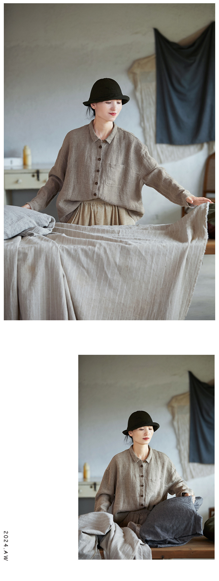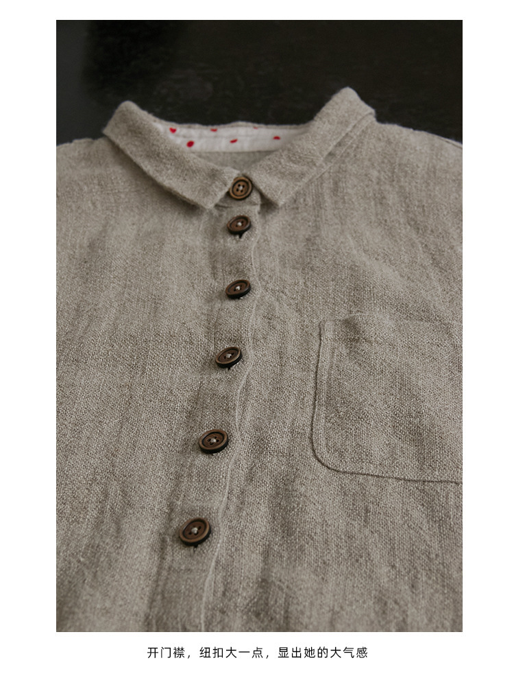 2025 봄 와비사비 잔디와 나무 레인 듀 린넨 희귀 원사 클래식 캐주얼 다목적 공예 루즈 셔츠 여성용스토어 가기