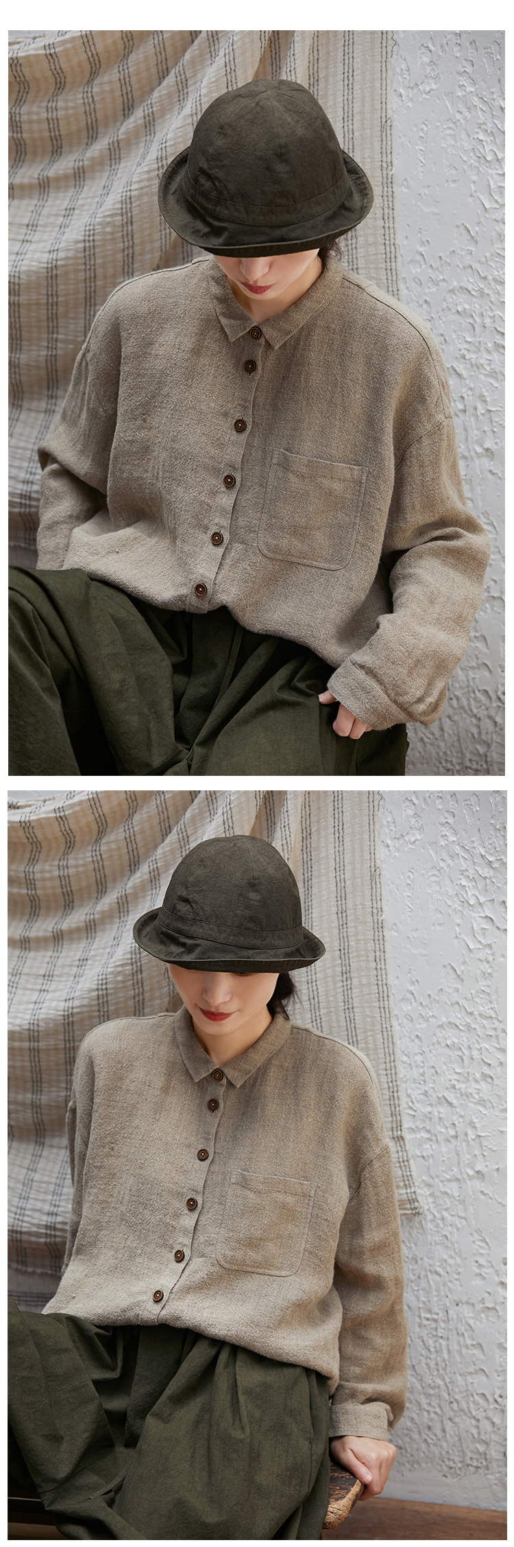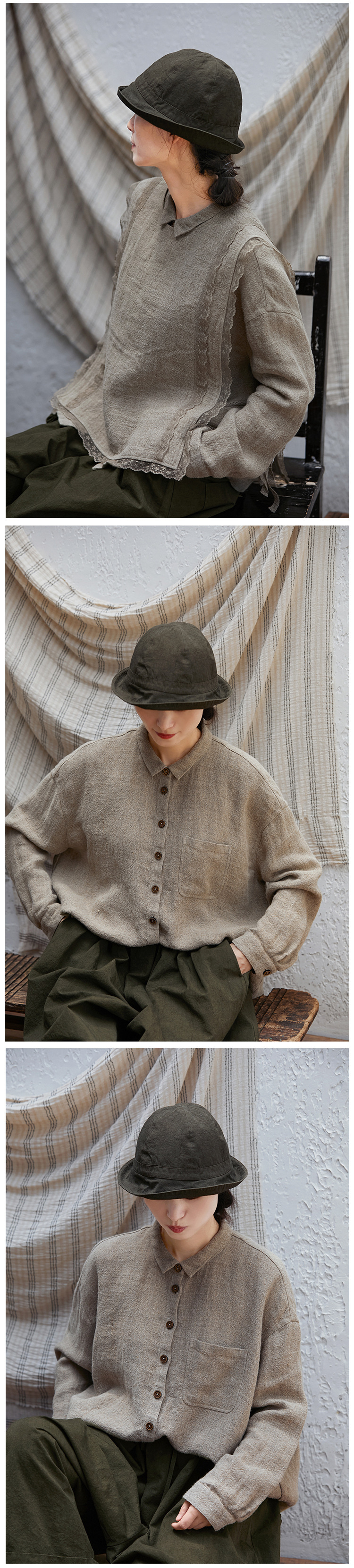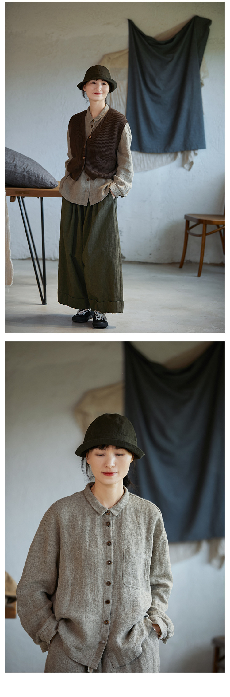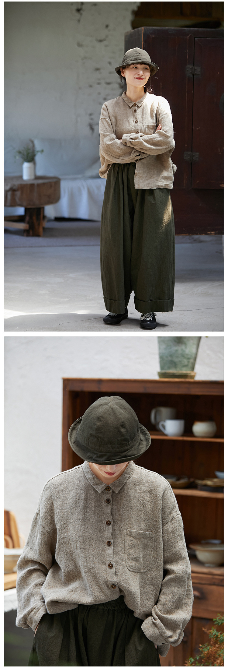 2025 봄 와비사비 잔디와 나무 레인 듀 린넨 희귀 원사 클래식 캐주얼 다목적 공예 루즈 셔츠 여성용스토어 가기