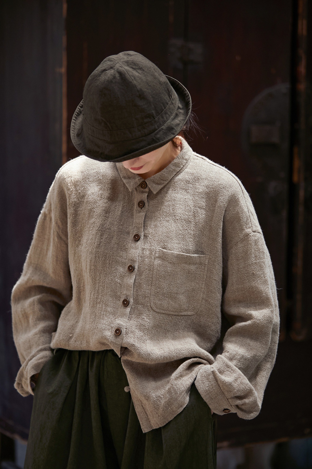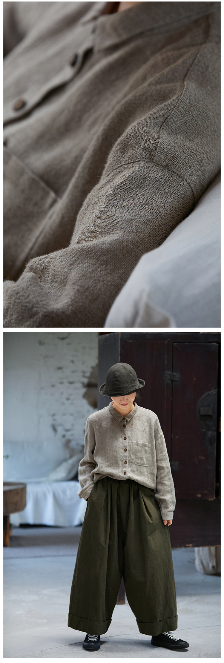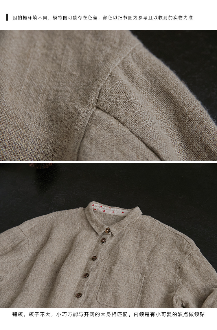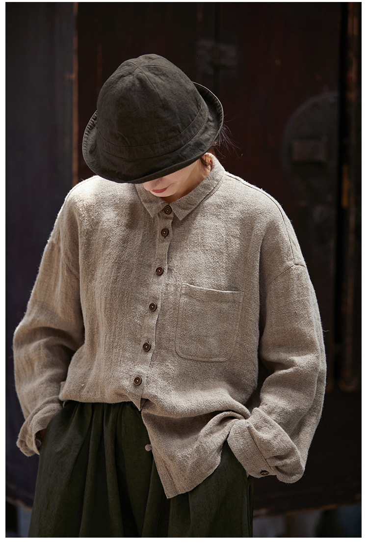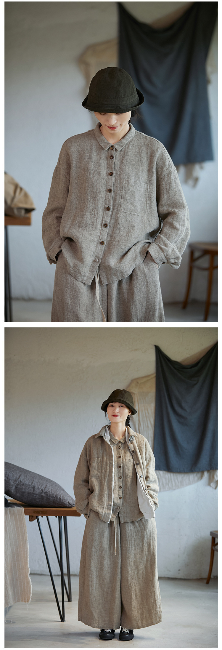 2025 봄 와비사비 잔디와 나무 레인 듀 린넨 희귀 원사 클래식 캐주얼 다목적 공예 루즈 셔츠 여성용스토어 가기