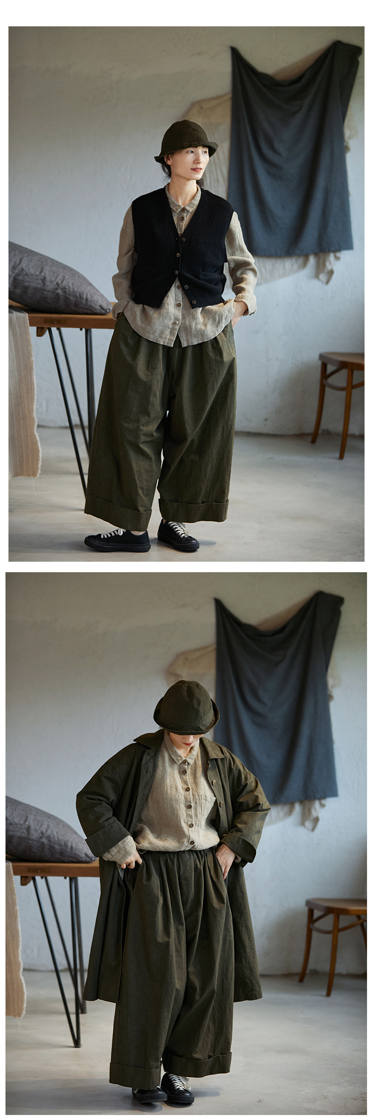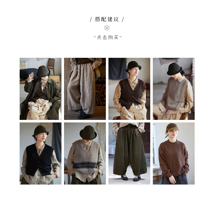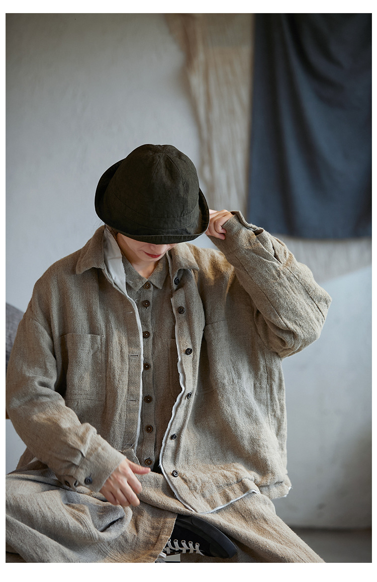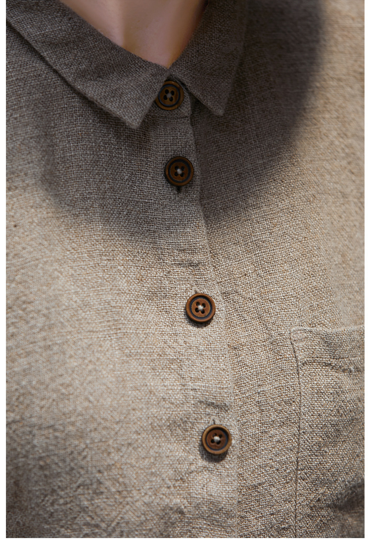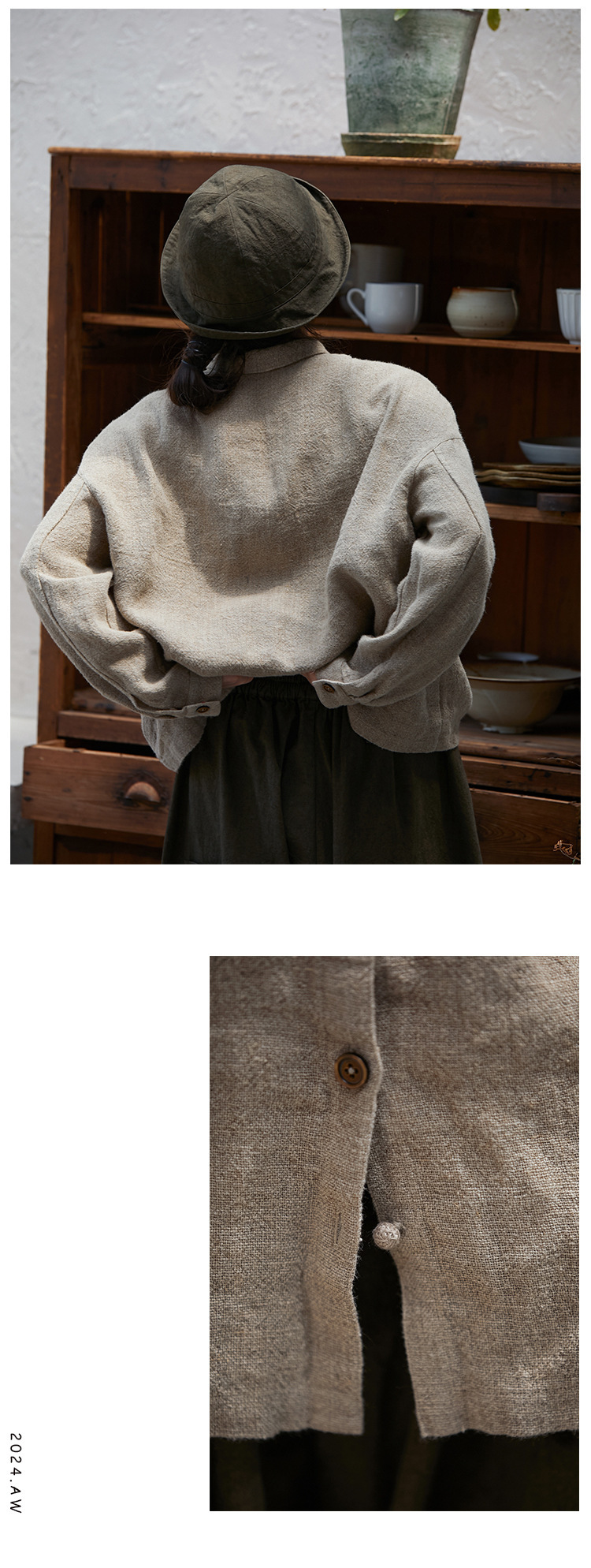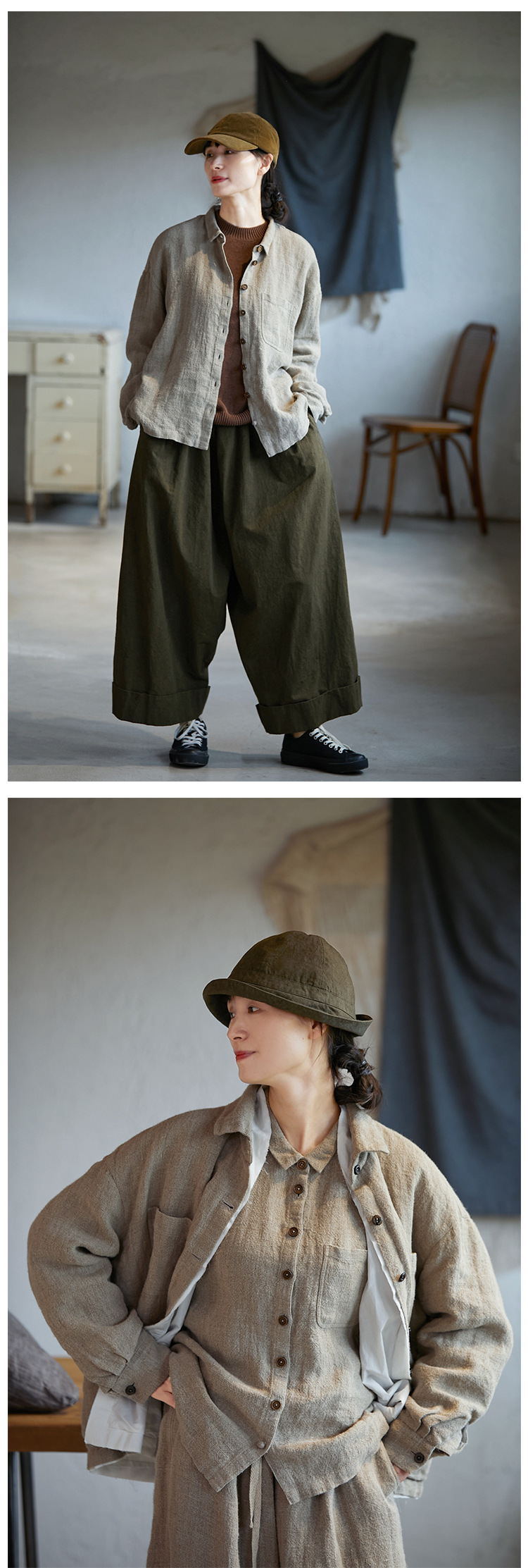 2025 봄 와비사비 잔디와 나무 레인 듀 린넨 희귀 원사 클래식 캐주얼 다목적 공예 루즈 셔츠 여성용스토어 가기