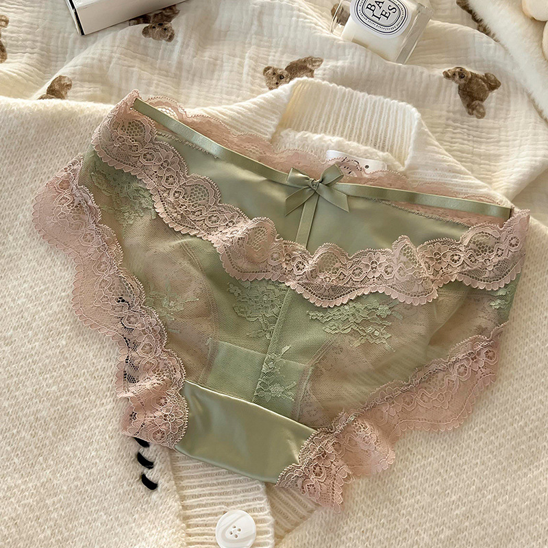 유럽과 미국의 얇은 섹시한 여성 레이스 플러스 사이즈 순수한 욕망 바람 할로우 속옷 여성의 여름 중간 낮은 허리 순면 크로트 여성