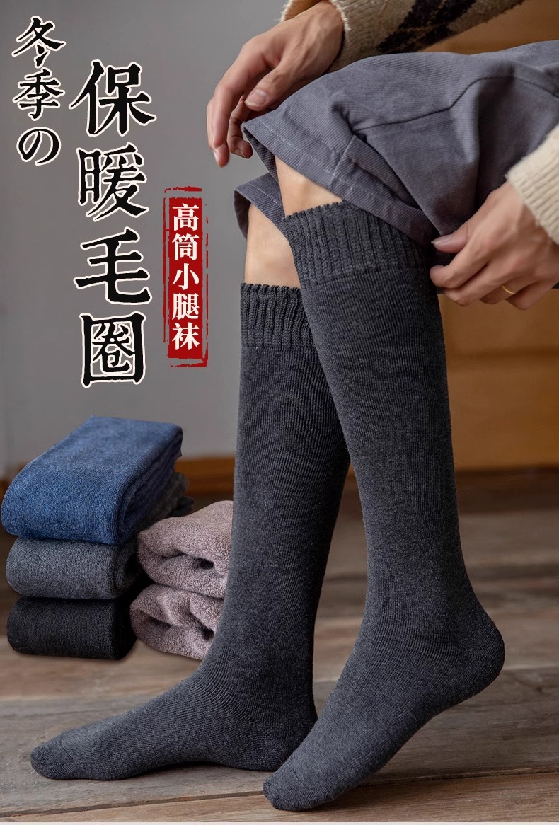 가을과 겨울 남성 종아리 양말면 양말 수건 양말은 초두꺼운 양말을 기모 남성 스타킹 겨울 중반 튜브