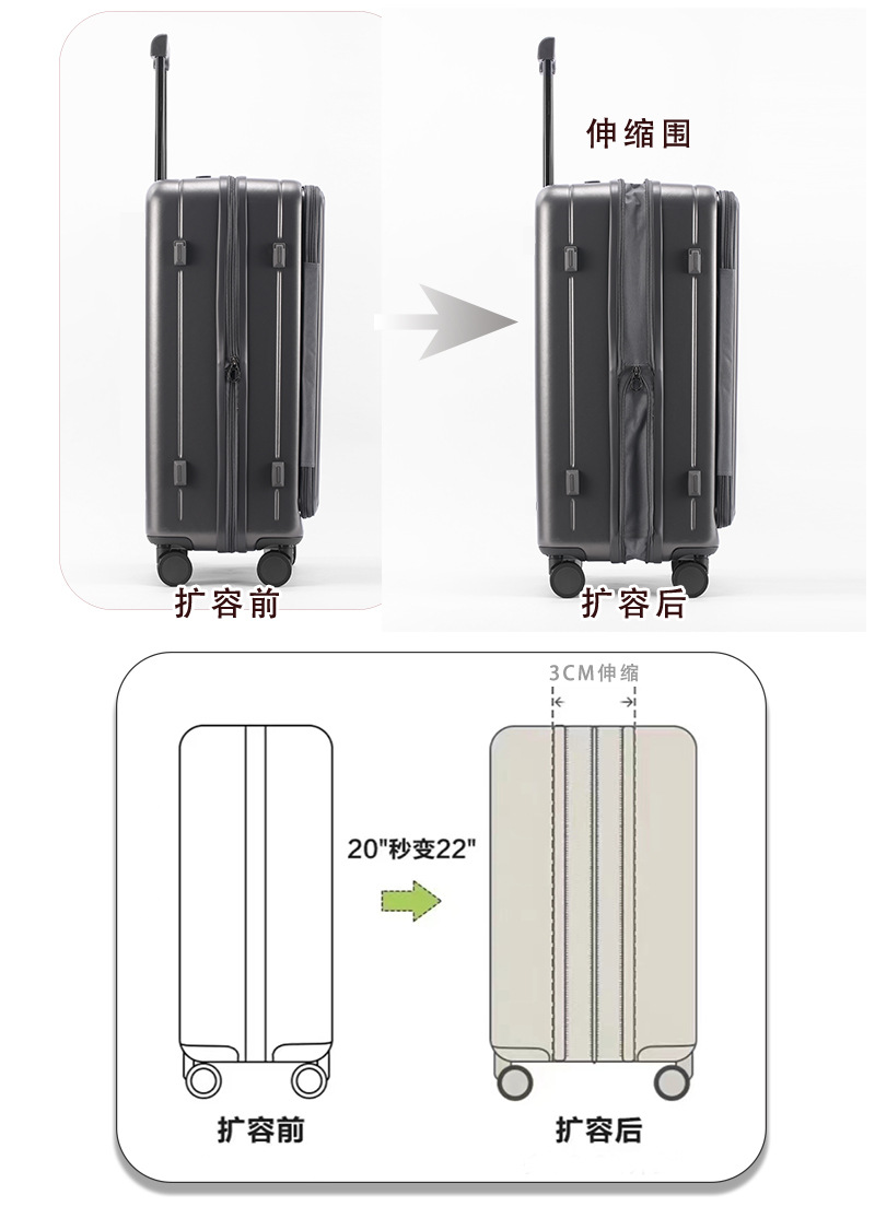 남성용 28 사이드 오픈 뚜껑 수하물 케이스 확장 가능한 다기능 20 인치 풀로드 가방 탑승 비밀번호 수하물 케이스 24 인치스토어 가기