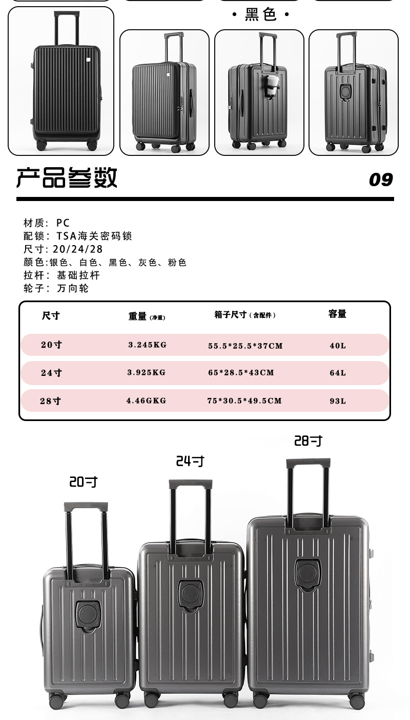 남성용 28 사이드 오픈 뚜껑 수하물 케이스 확장 가능한 다기능 20 인치 풀로드 가방 탑승 비밀번호 수하물 케이스 24 인치