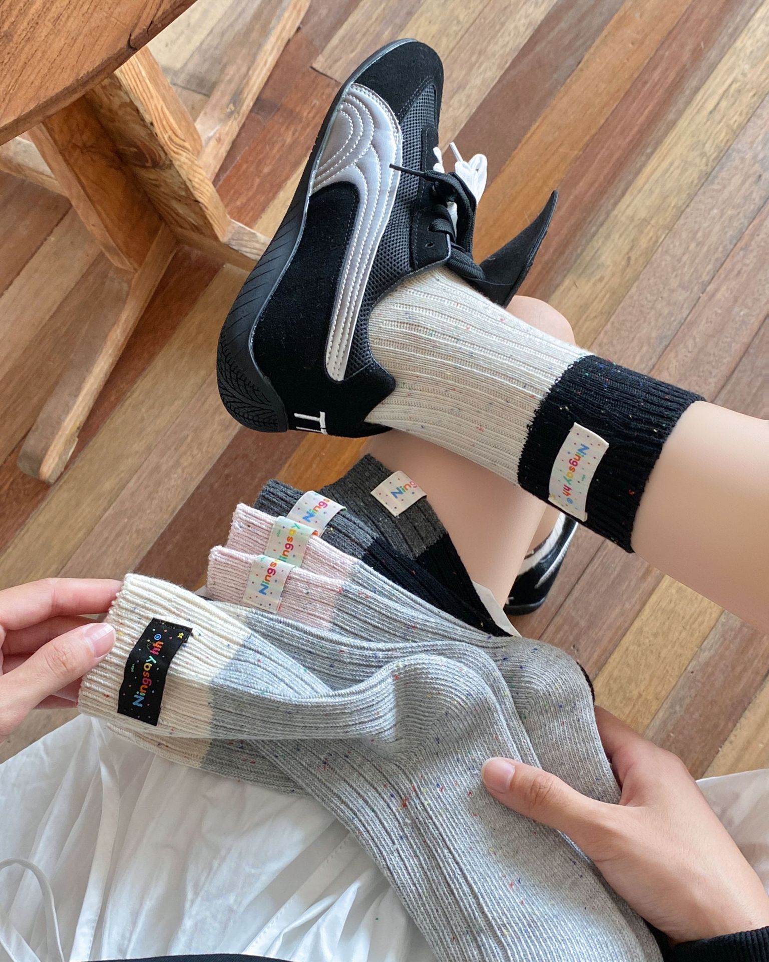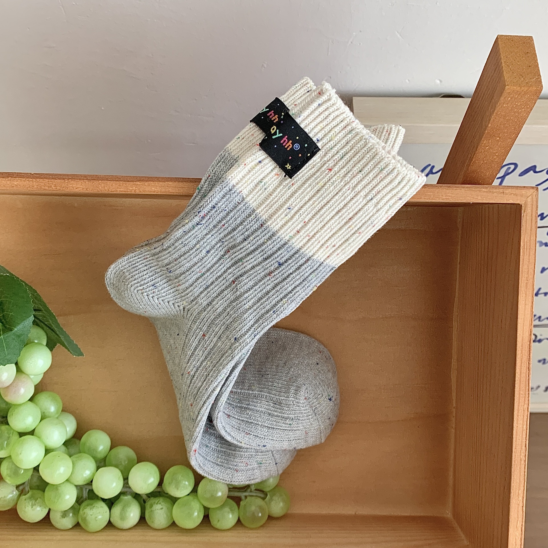 컬러 매칭 힐 천 라벨 굵은 바늘 양말 한국 포인트 실 튜브 파일 양말 어린이 남녀 커플 Zhuji 양말 도매