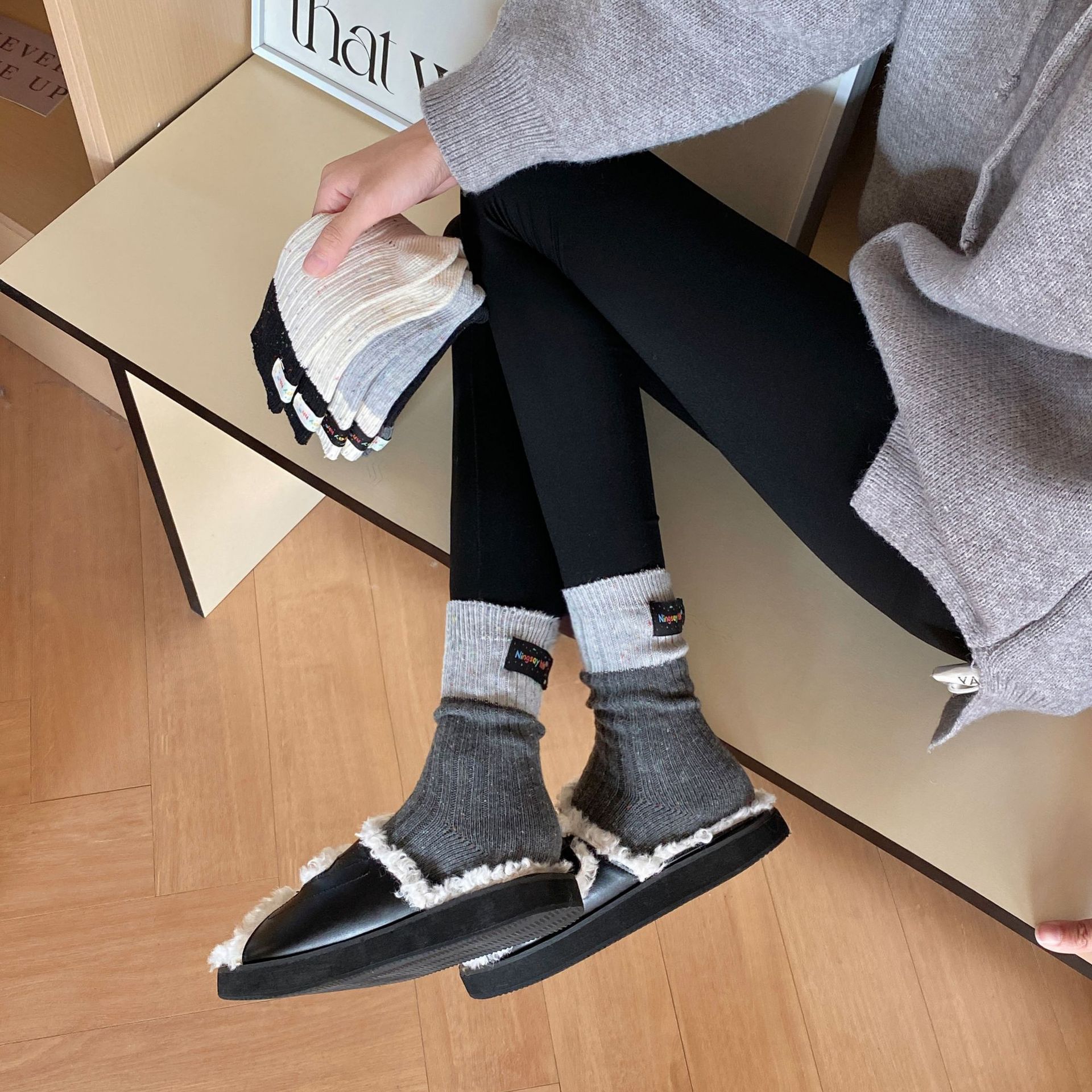컬러 매칭 힐 천 라벨 굵은 바늘 양말 한국 포인트 실 튜브 파일 양말 어린이 남녀 커플 Zhuji 양말 도매스토어 가기