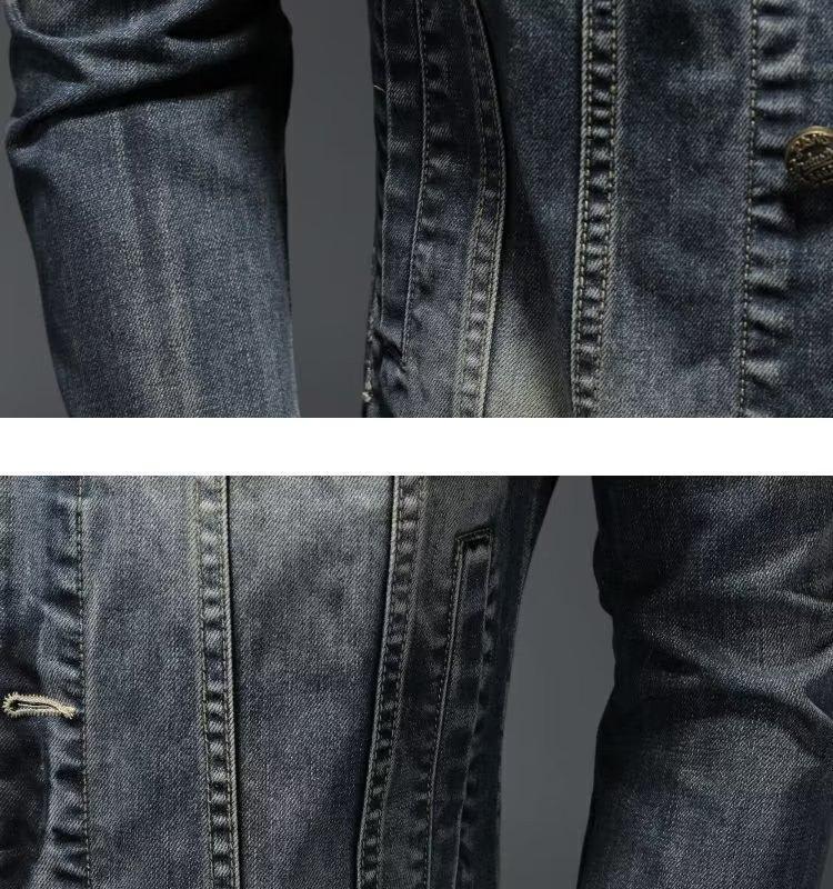 Manwei Venom 데님 재킷 남성 아메리칸 스타일 레트로 독특한 슬림 핏 수직 칼라 지퍼 크록 재킷 자전거 세트
