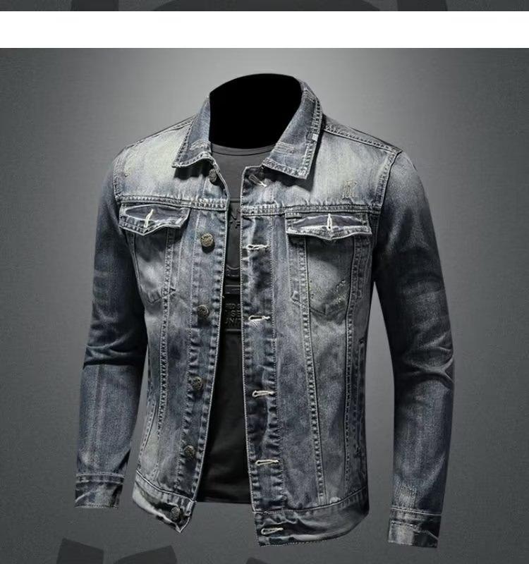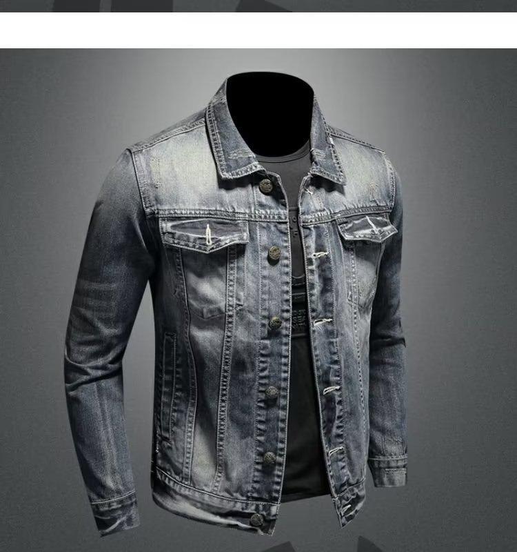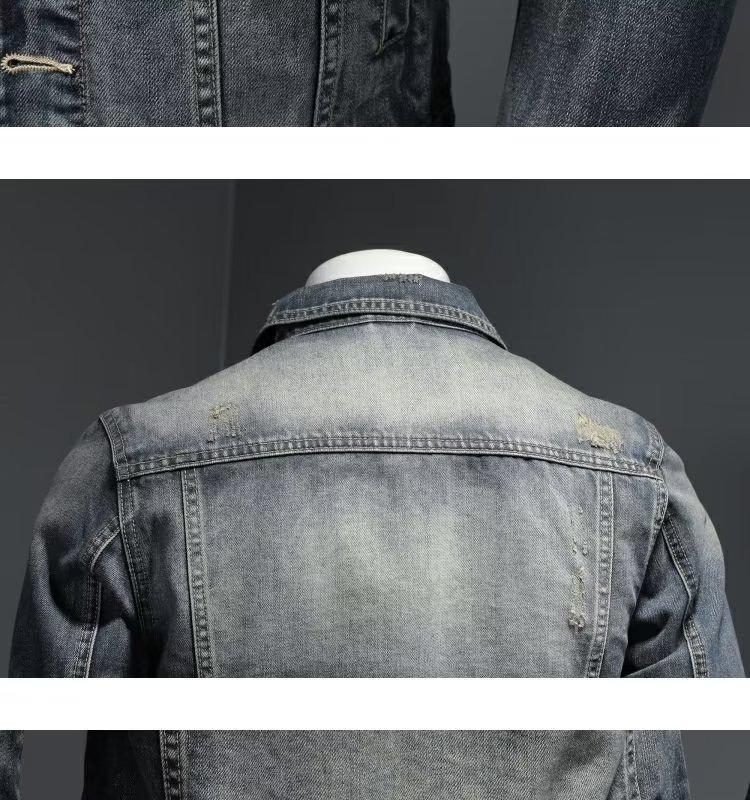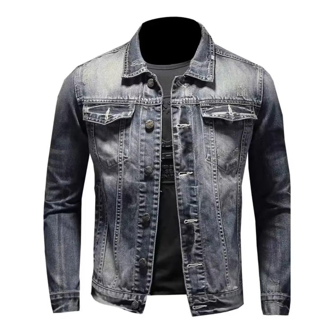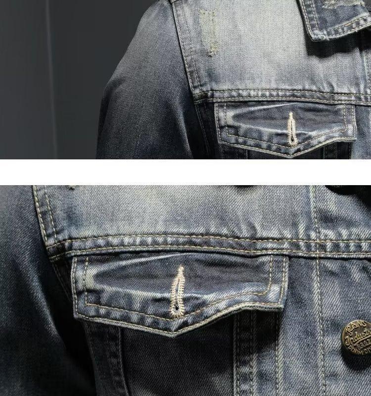 Manwei Venom 데님 재킷 남성 아메리칸 스타일 레트로 독특한 슬림 핏 수직 칼라 지퍼 크록 재킷 자전거 세트스토어 가기