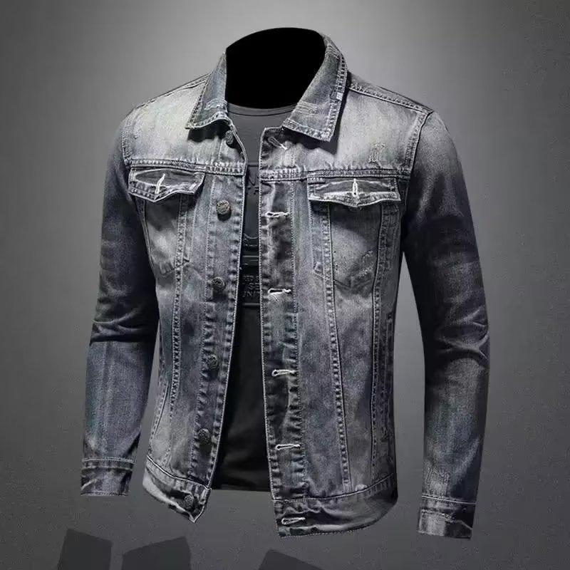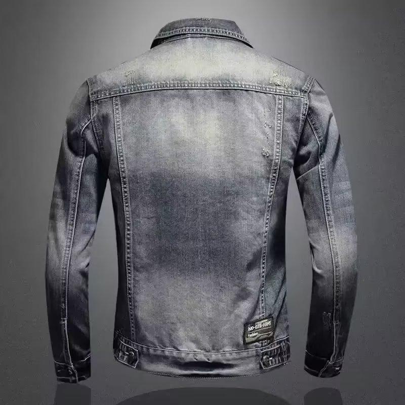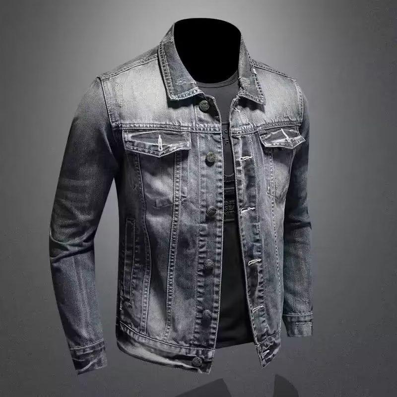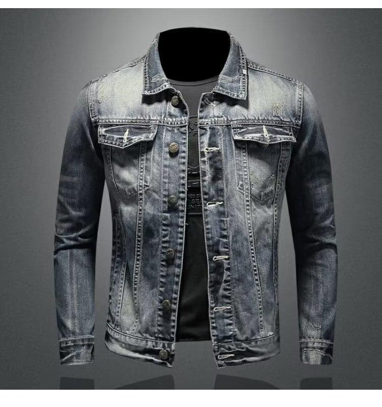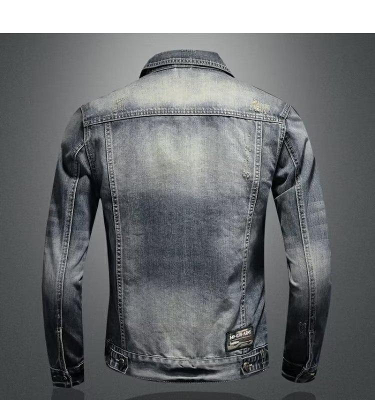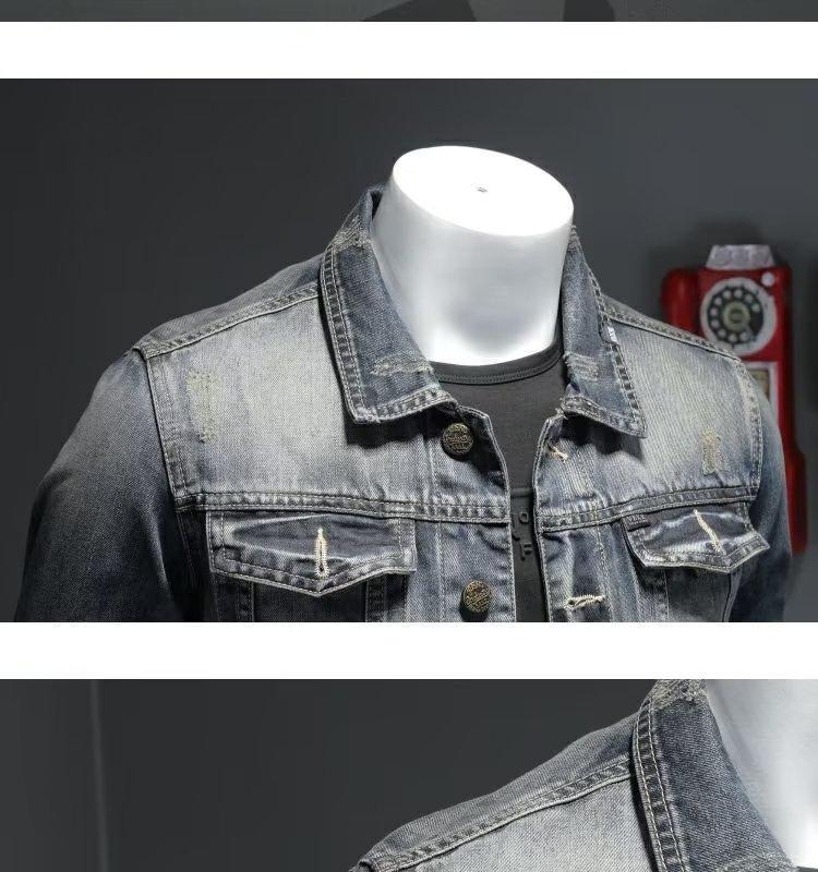 Manwei Venom 데님 재킷 남성 아메리칸 스타일 레트로 독특한 슬림 핏 수직 칼라 지퍼 크록 재킷 자전거 세트스토어 가기