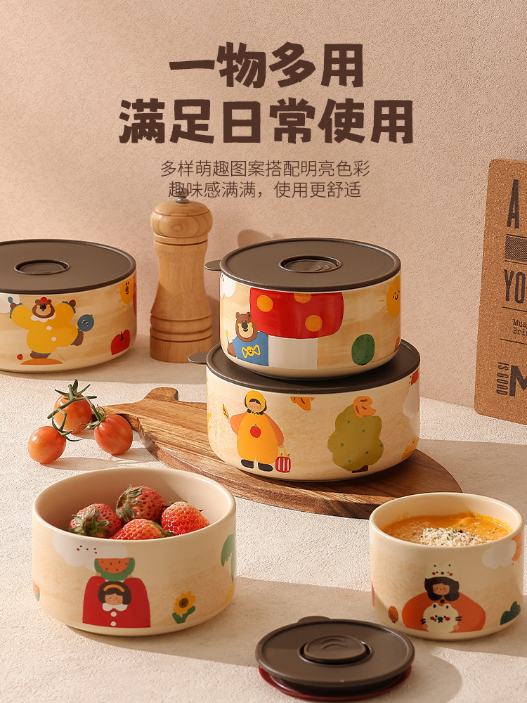 뚜껑이있는 세라믹 신선한 보관 그릇 전자 레인지 인터넷 유명 인사 귀여운 만화 Eamono Bowl 과일 그릇 Gao Hengming
