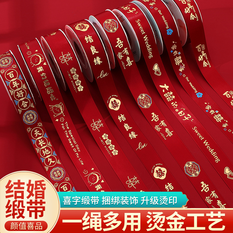 웨딩 레드 리본 해피 캐릭터 축제 장식 결혼식 선물 웨딩 룸 이불 번들 벨트 현금 번들 Heng Ming스토어 가기