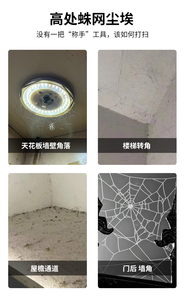 스윕 스파이더 웹 청소 천장 먼지 가정용 지붕 청소 지붕 깃털 먼지 청소 회색 호닝 비문