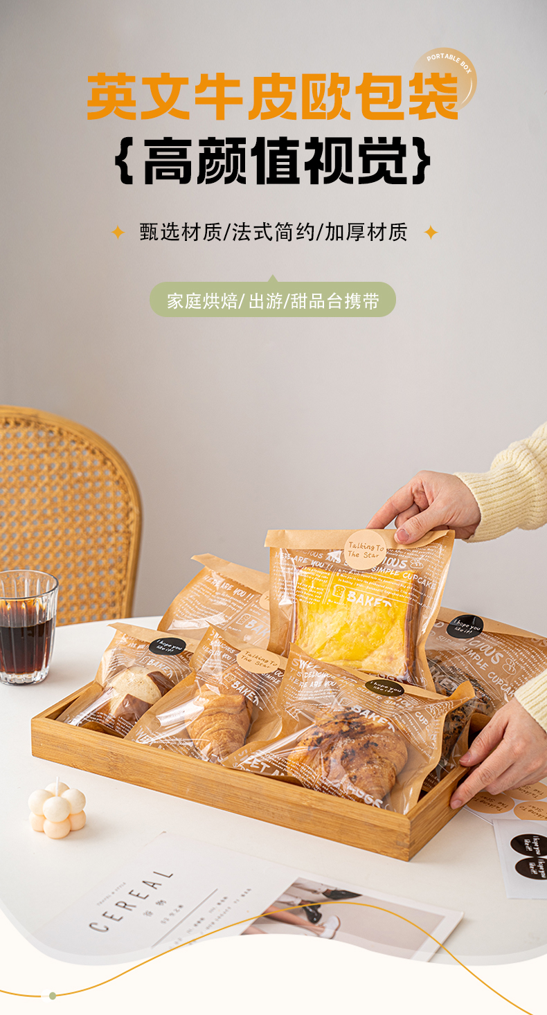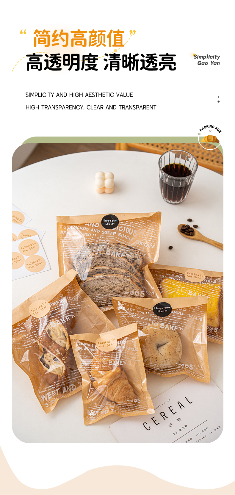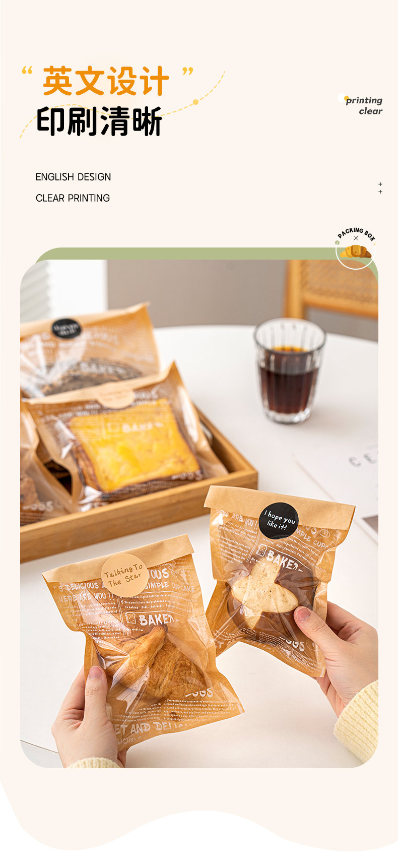 크래프트 종이 빵 포장 가방 아침 식사 가방 슬라이스 토스트 영어 투명 콩 가방 파인애플 가방 크로와상 가방 Heng Ming스토어 가기