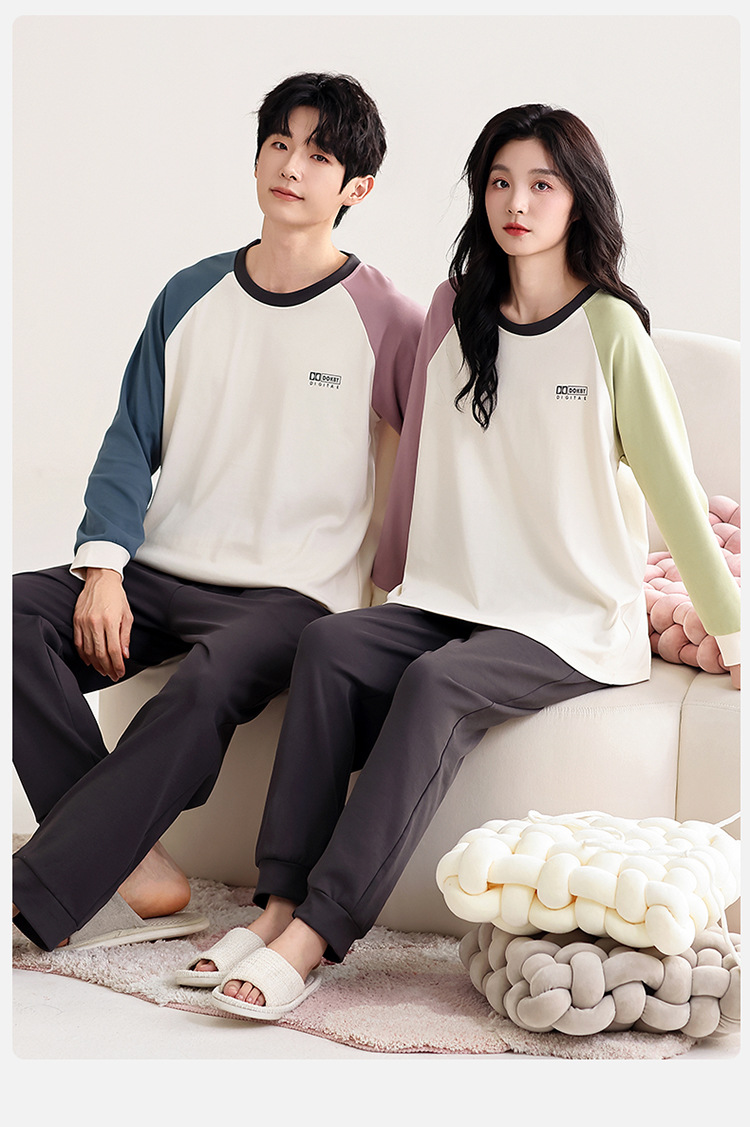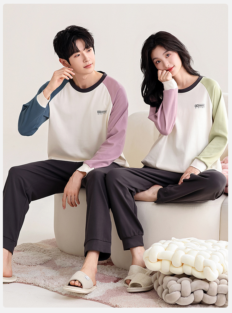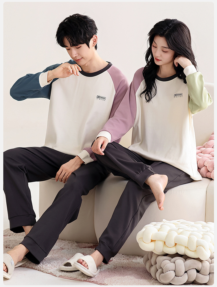 가을 새 순면 커플 잠옷 여성용 긴팔 풀오버 남성과 여성의 느슨한 플러스 사이즈 홈 의류 세트 외장 착용