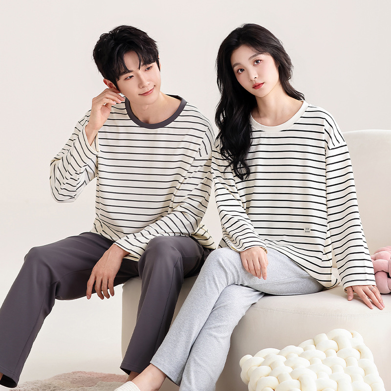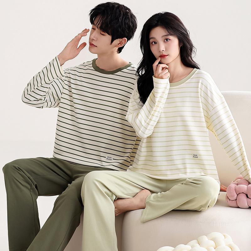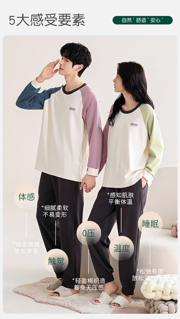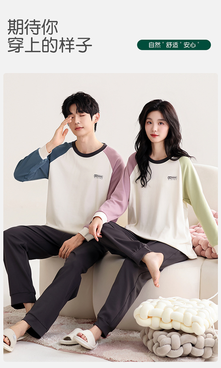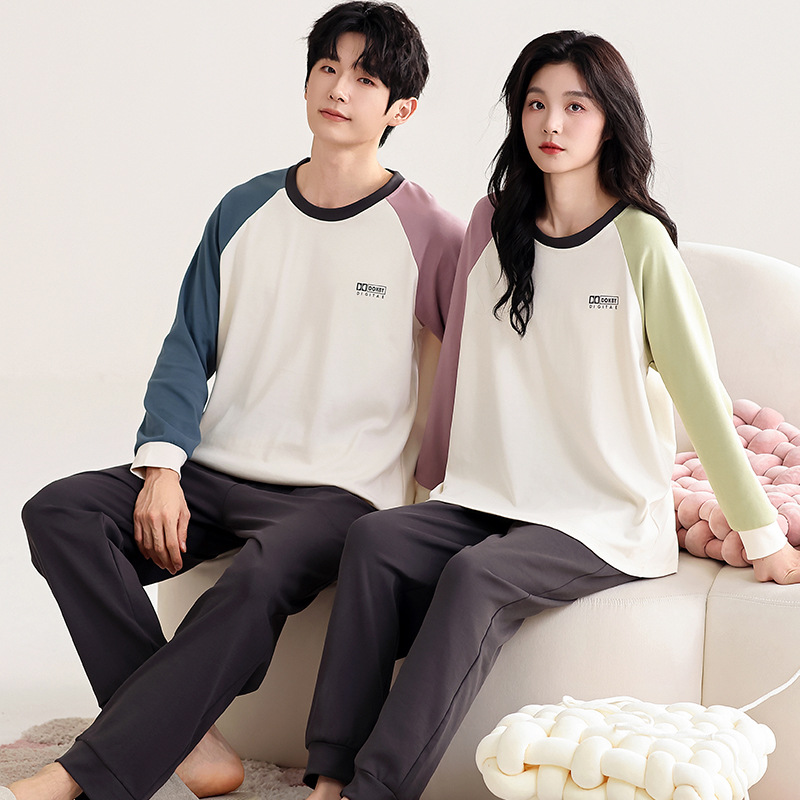 가을 새 순면 커플 잠옷 여성용 긴팔 풀오버 남성과 여성의 느슨한 플러스 사이즈 홈 의류 세트 외장 착용스토어 가기