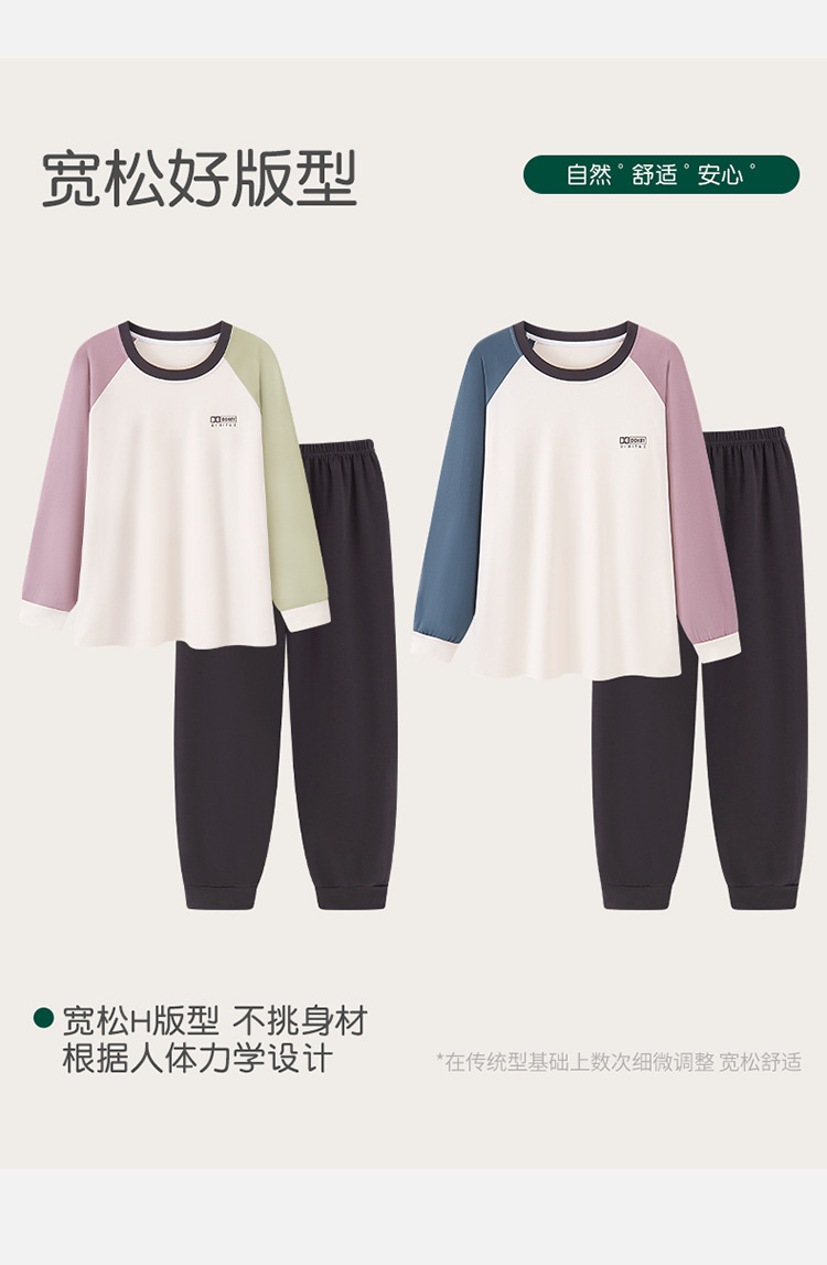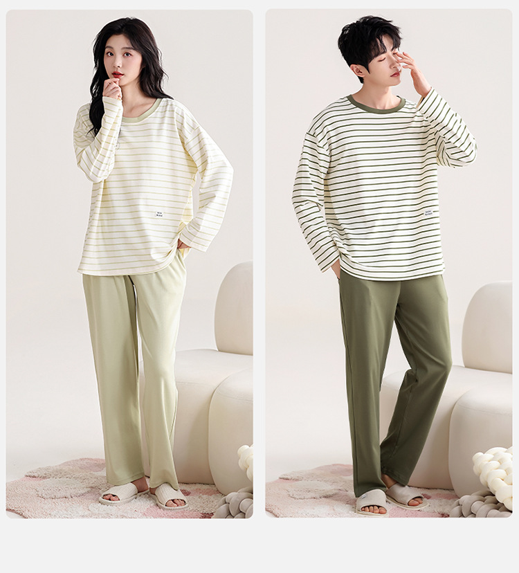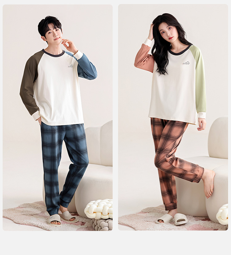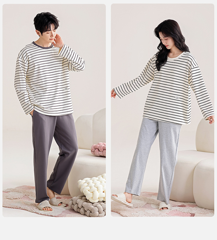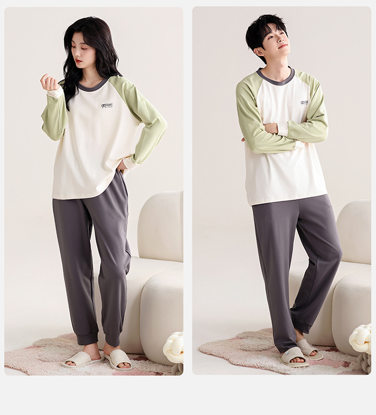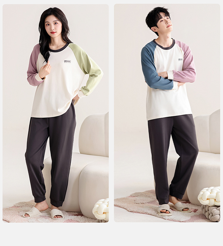가을 새 순면 커플 잠옷 여성용 긴팔 풀오버 남성과 여성의 느슨한 플러스 사이즈 홈 의류 세트 외장 착용스토어 가기
