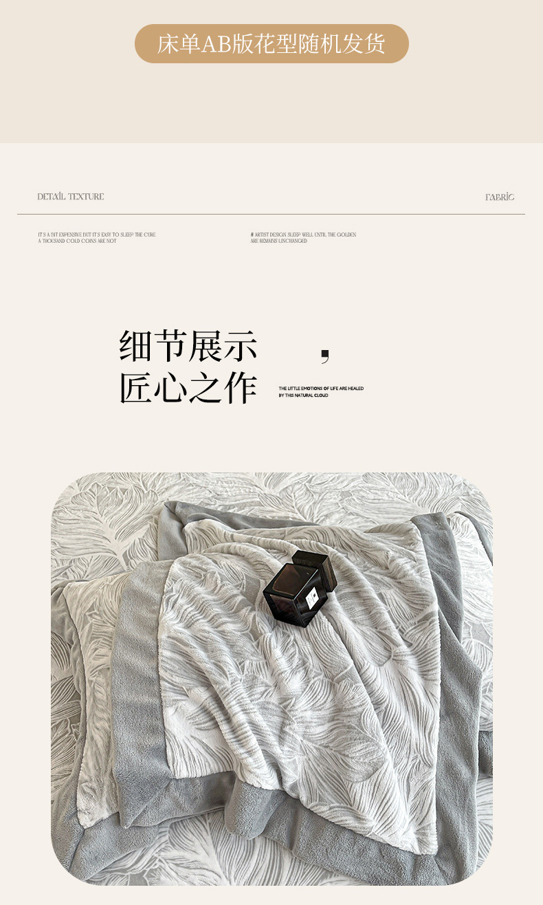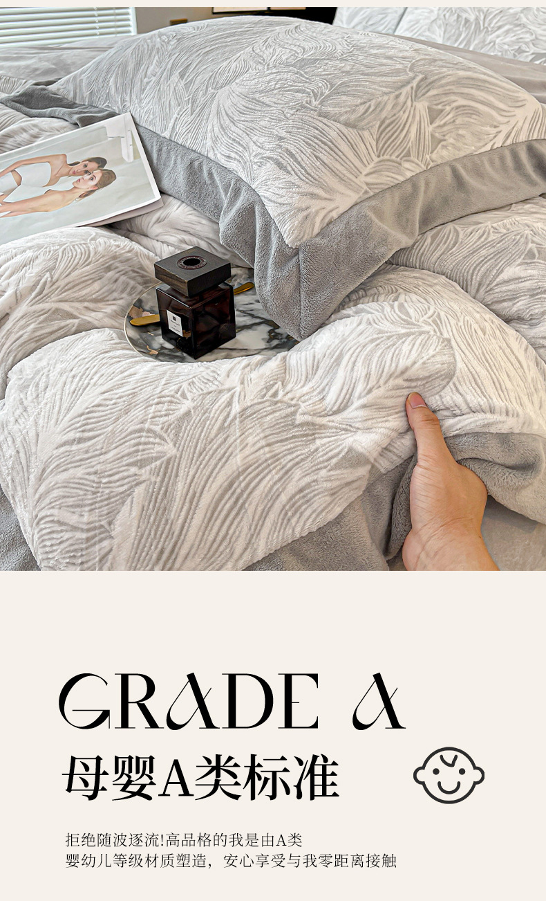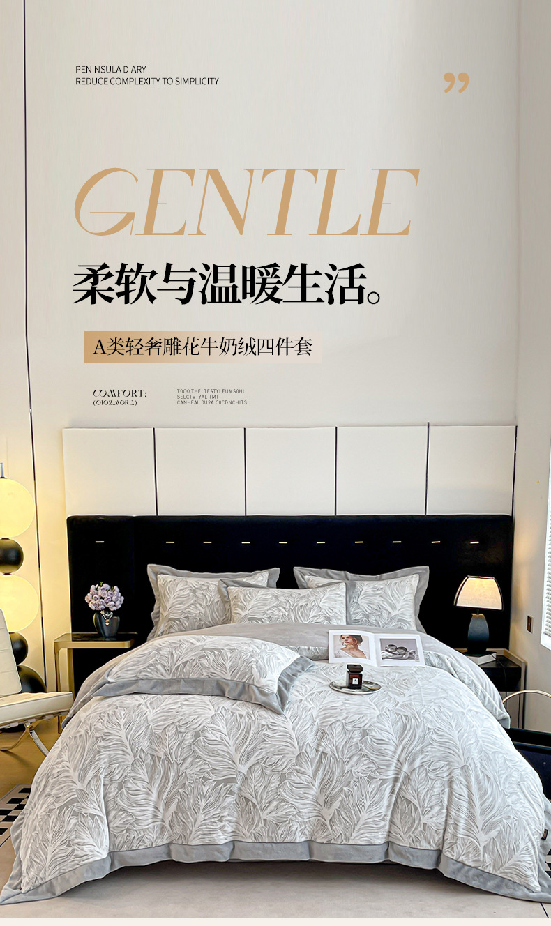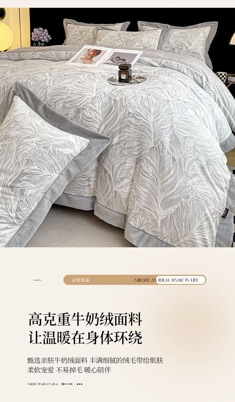가벼운 럭셔리 클래스 밀크 벨벳 4 피스 세트 3 차원 조각 벨벳 플란넬 침대 시트 퀼트 커버 겨울 따뜻한 벨벳 퀼트 커버