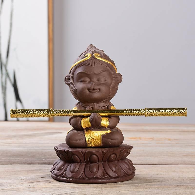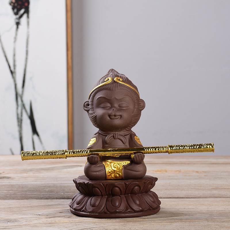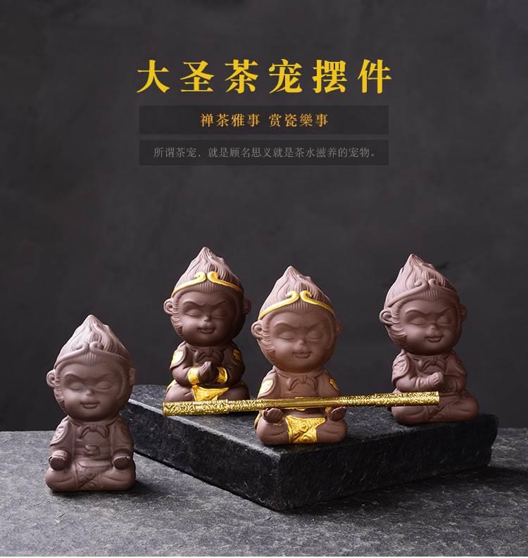 수족관 수족관 풍경 원숭이 왕 장식품 보라색 모래 원숭이 왕 차 애완 동물 장식품 장식 차 테이블 차 명나라