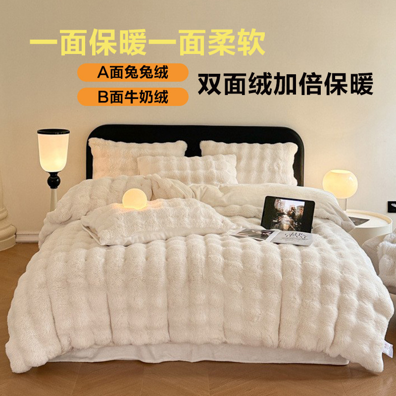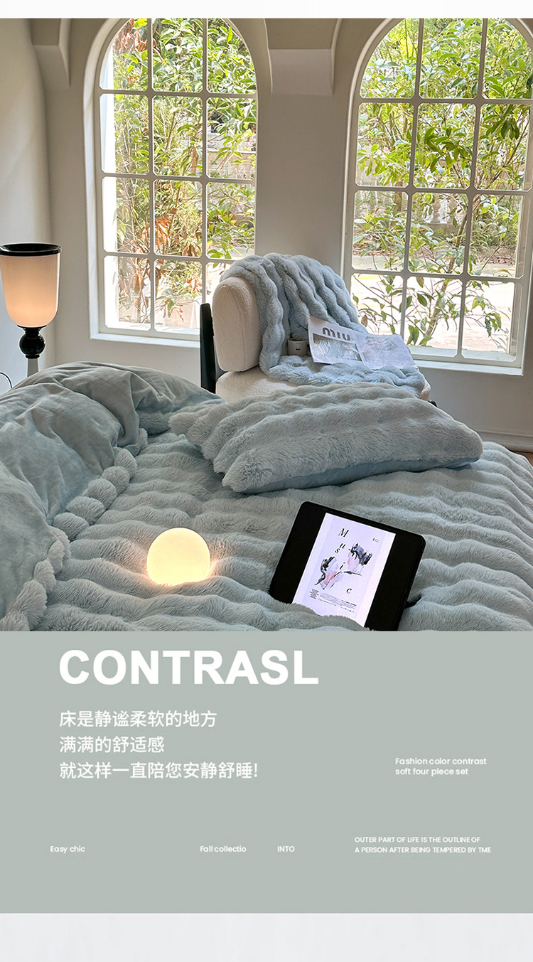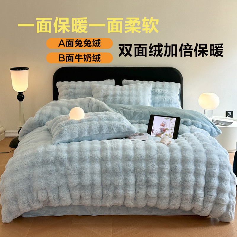 높은 무게 토끼 플러시 4 피스 세트 겨울 기모 두꺼운 침대 시트 3 피스 세트 겨울 양면 벨벳 퀼트 커버 키트스토어 가기