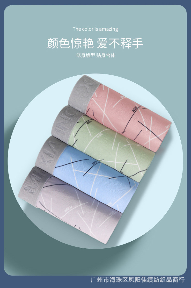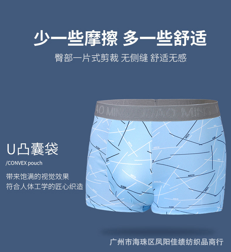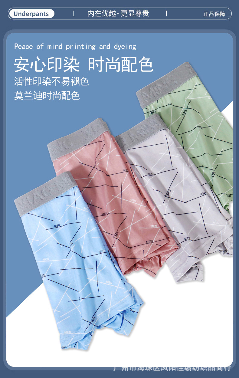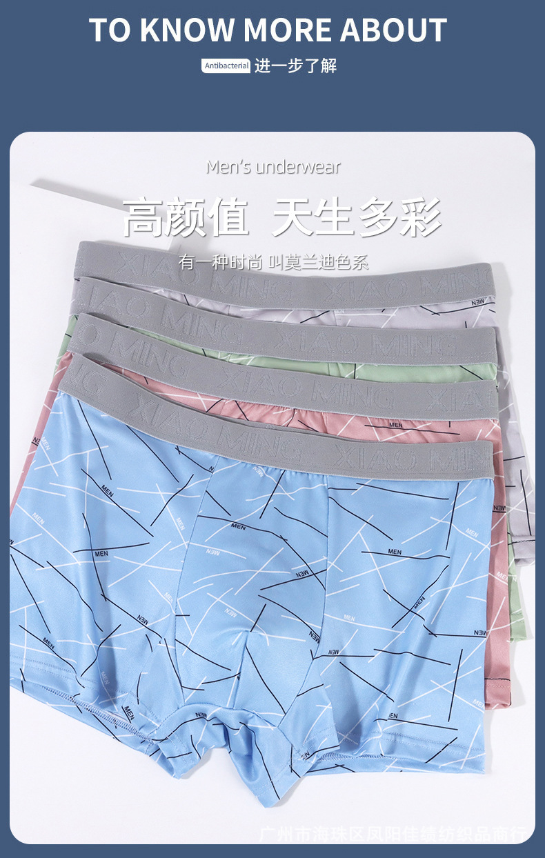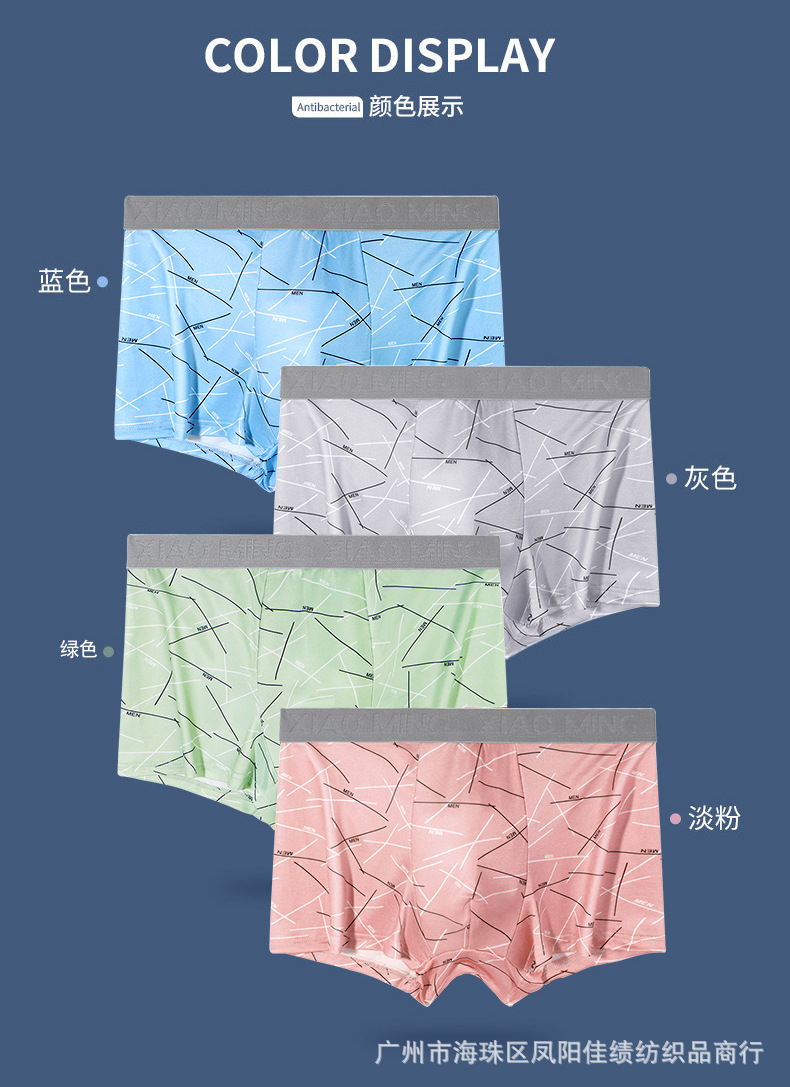 Four Seasons 통기성 남성 밀크 실크 부드럽고 편안한 복서 패션 디자인 청소년 복서 베어 바지 국경스토어 가기