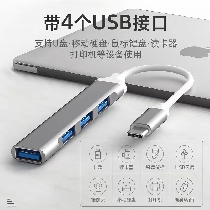 适用于USB端口和TYPEC端口的电脑及手机数据传输扩展使用,标准USB3.0理论5Gbps高速传输,可实际USB2.0多端口扩展,例:鼠标、键盘连接,外围设备连接、通过USB口下行给手机充电等多端口分线。