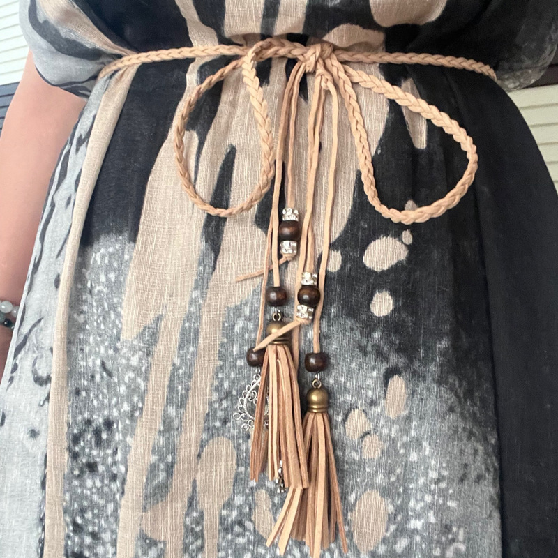 민족 스타일 여성의 허리 로프 말 얼굴 스커트 한푸 장식 수제 짠 허리 체인 패션 매듭 올매치 술 벨트스토어 가기