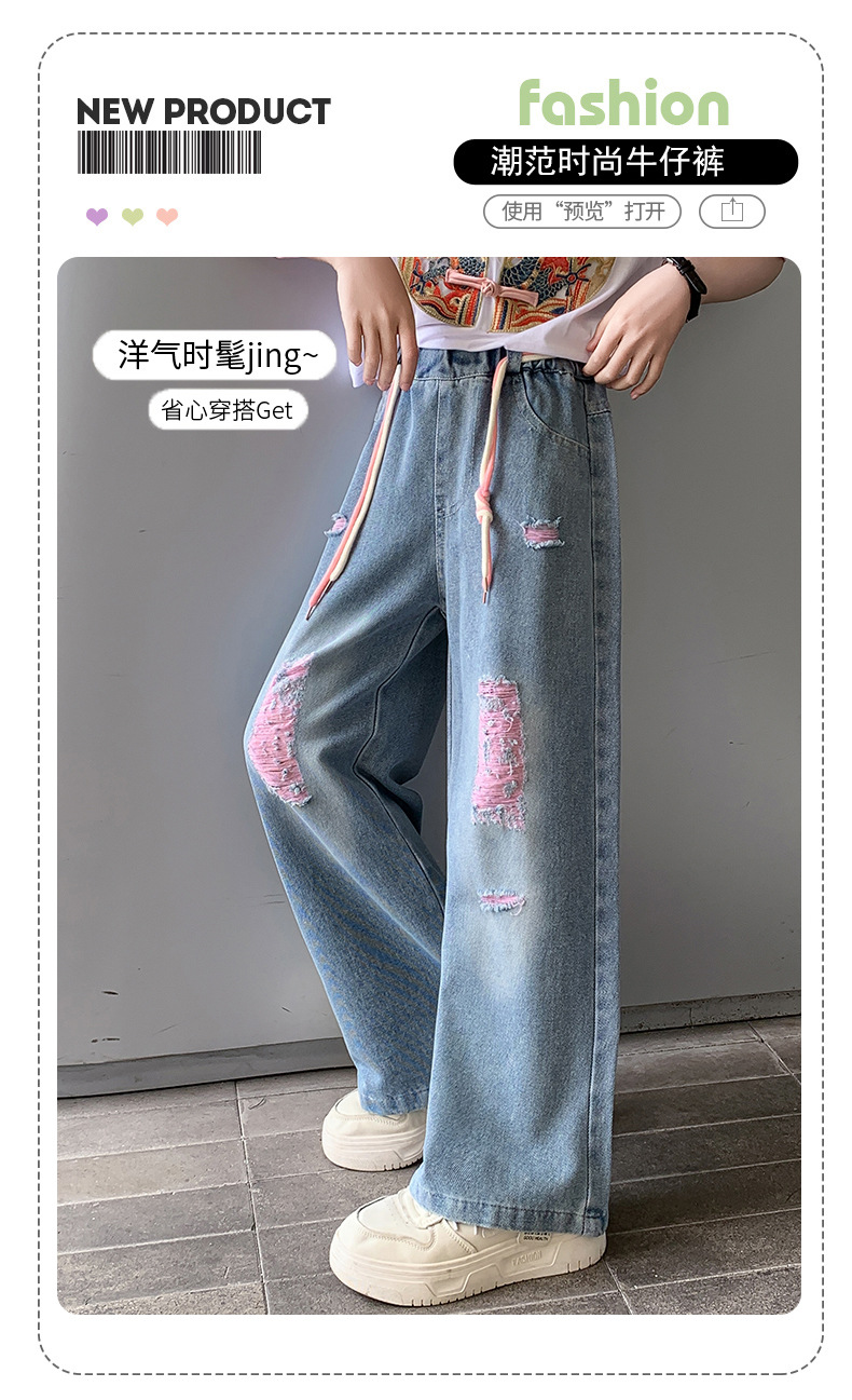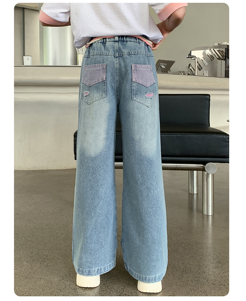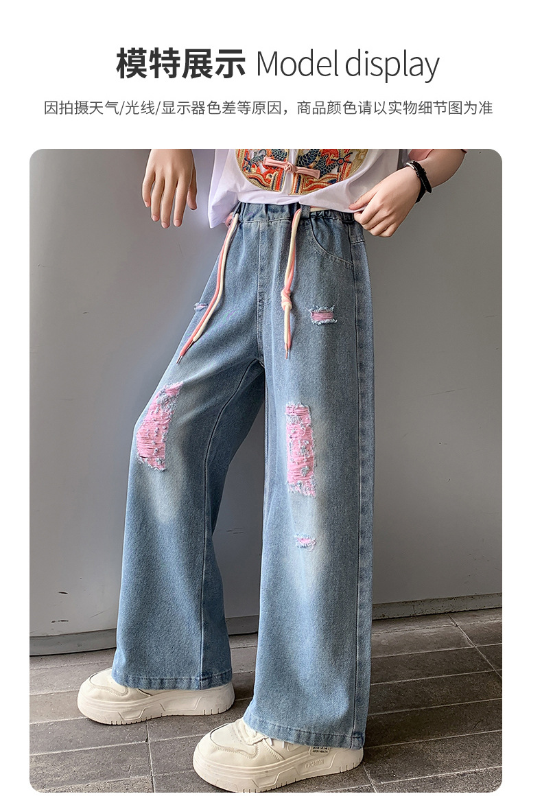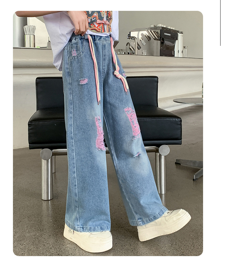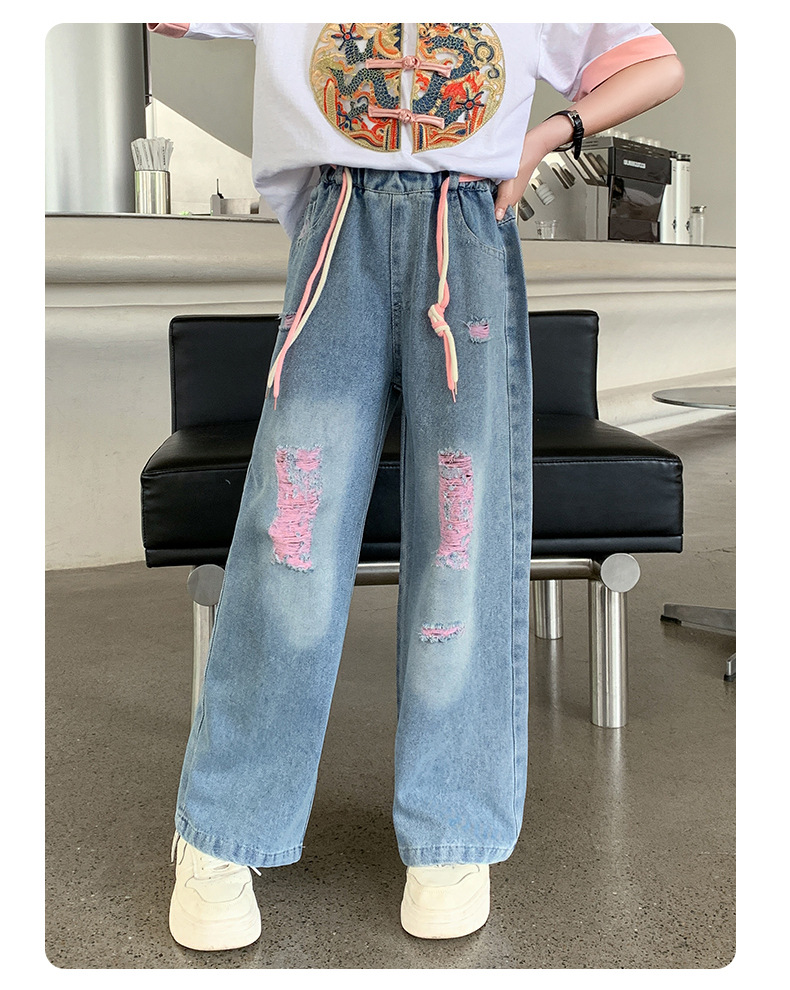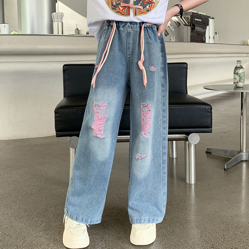 소녀 청바지 6 봄과 가을 새 8 개 어린이 10 개 바지 12 개 외부 착용 한국 14 개 아동복 걸스 찢어진 넓은 다리 바지스토어 가기
