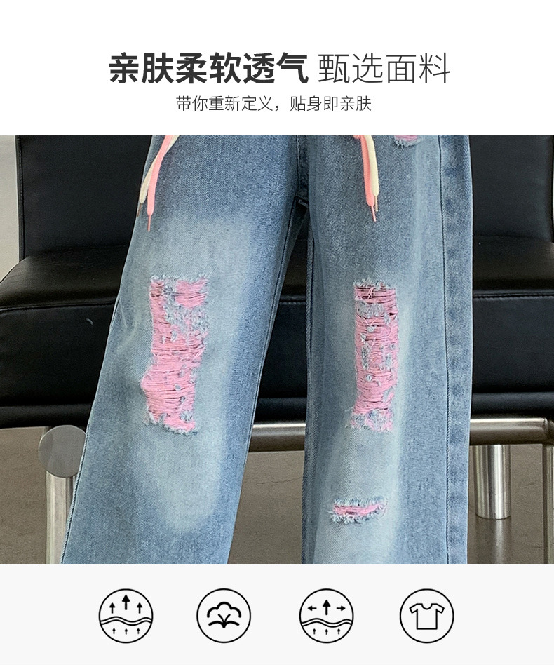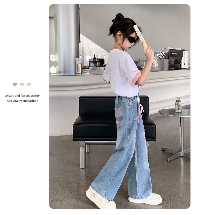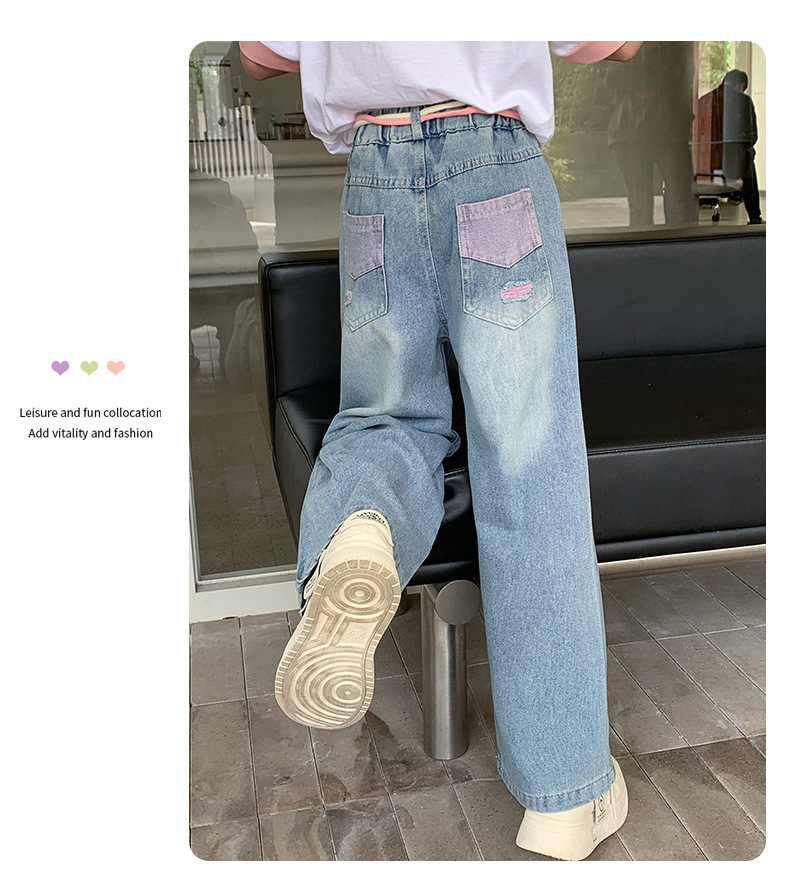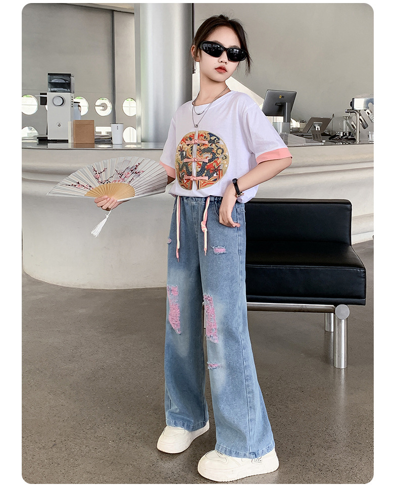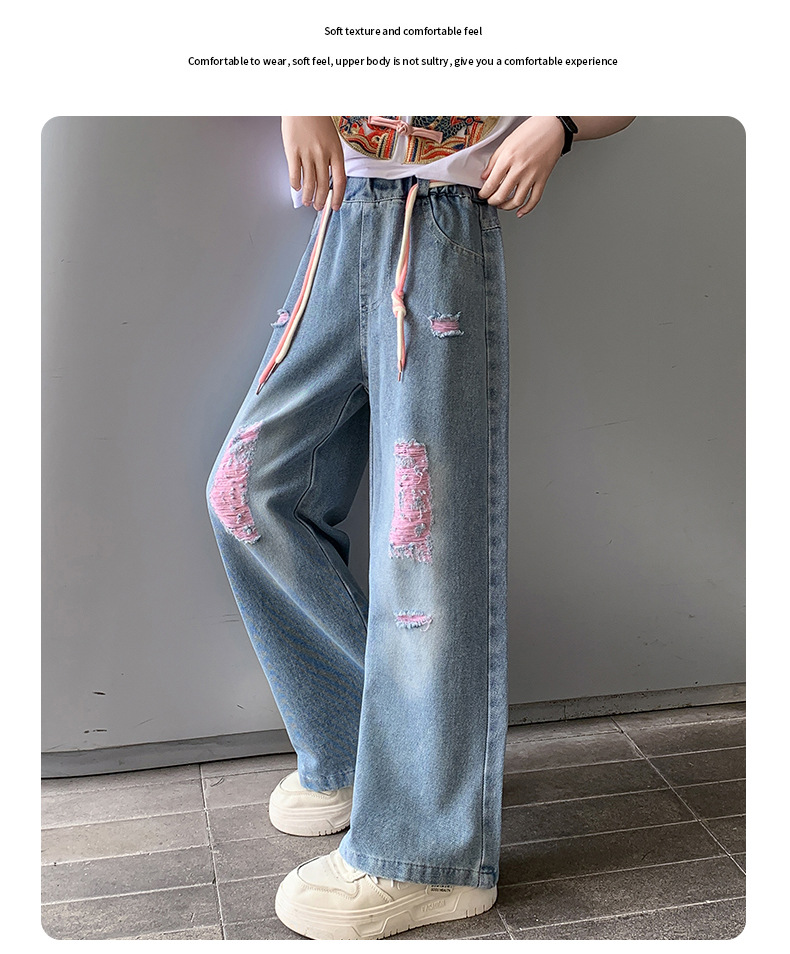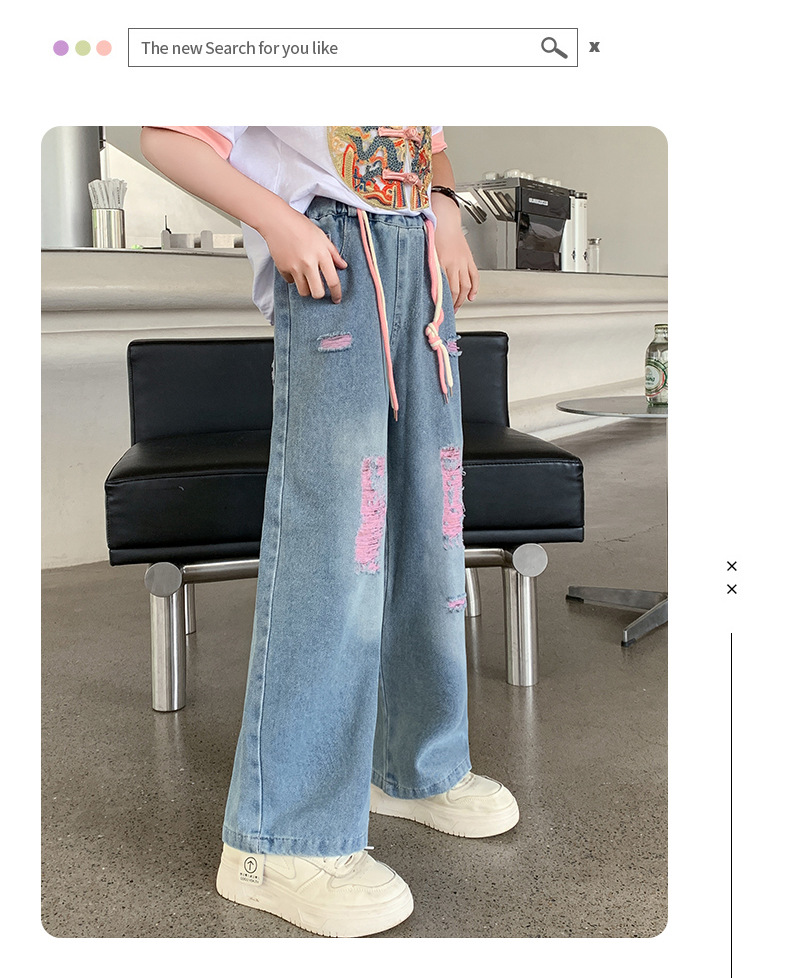 소녀 청바지 6 봄과 가을 새 8 개 어린이 10 개 바지 12 개 외부 착용 한국 14 개 아동복 걸스 찢어진 넓은 다리 바지스토어 가기