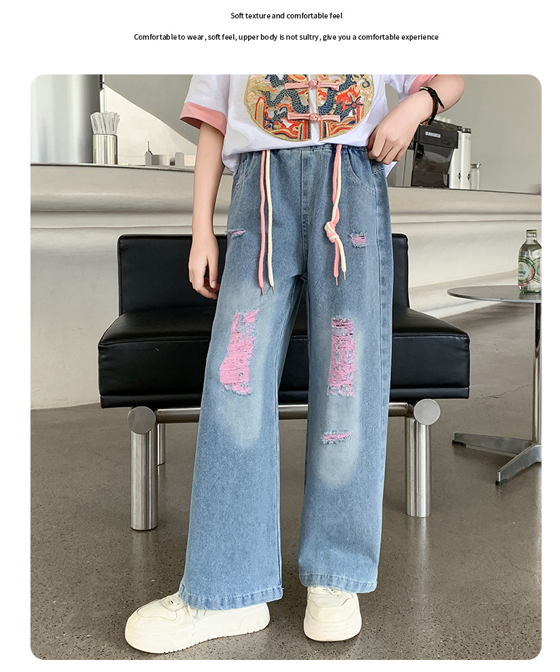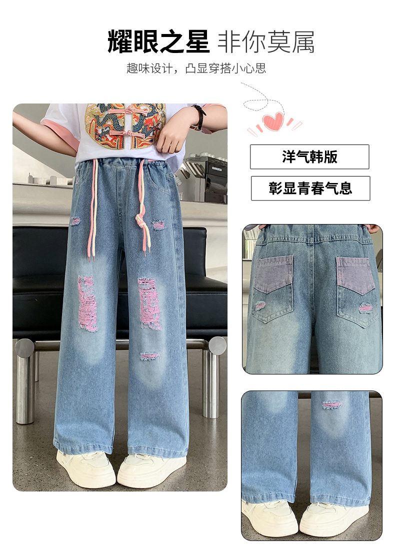 소녀 청바지 6 봄과 가을 새 8 개 어린이 10 개 바지 12 개 외부 착용 한국 14 개 아동복 걸스 찢어진 넓은 다리 바지