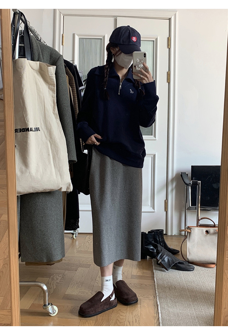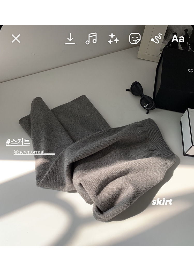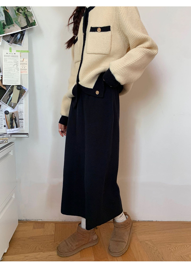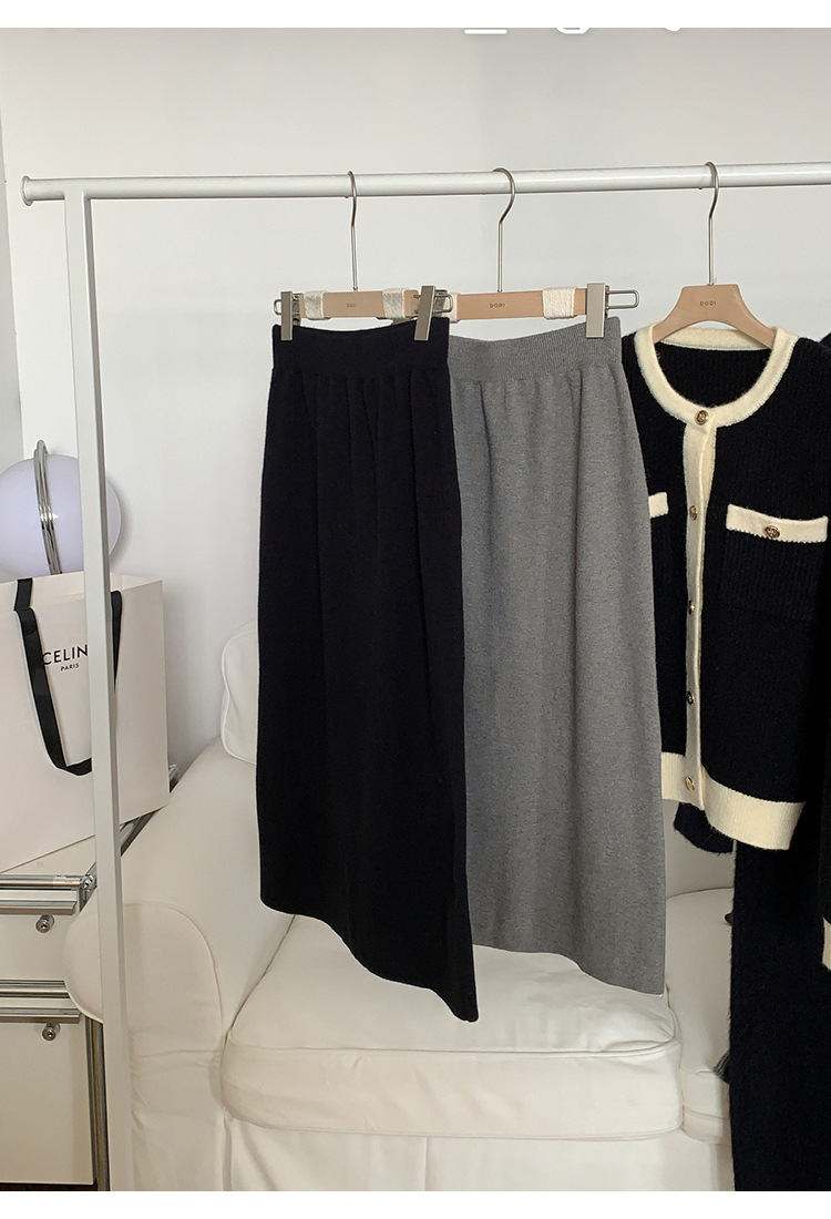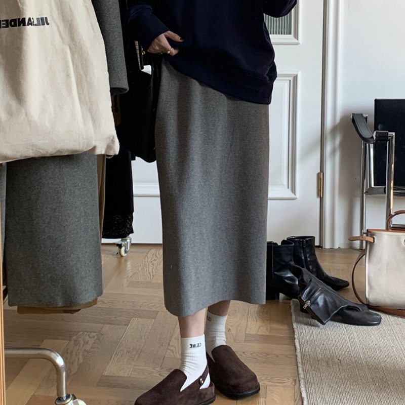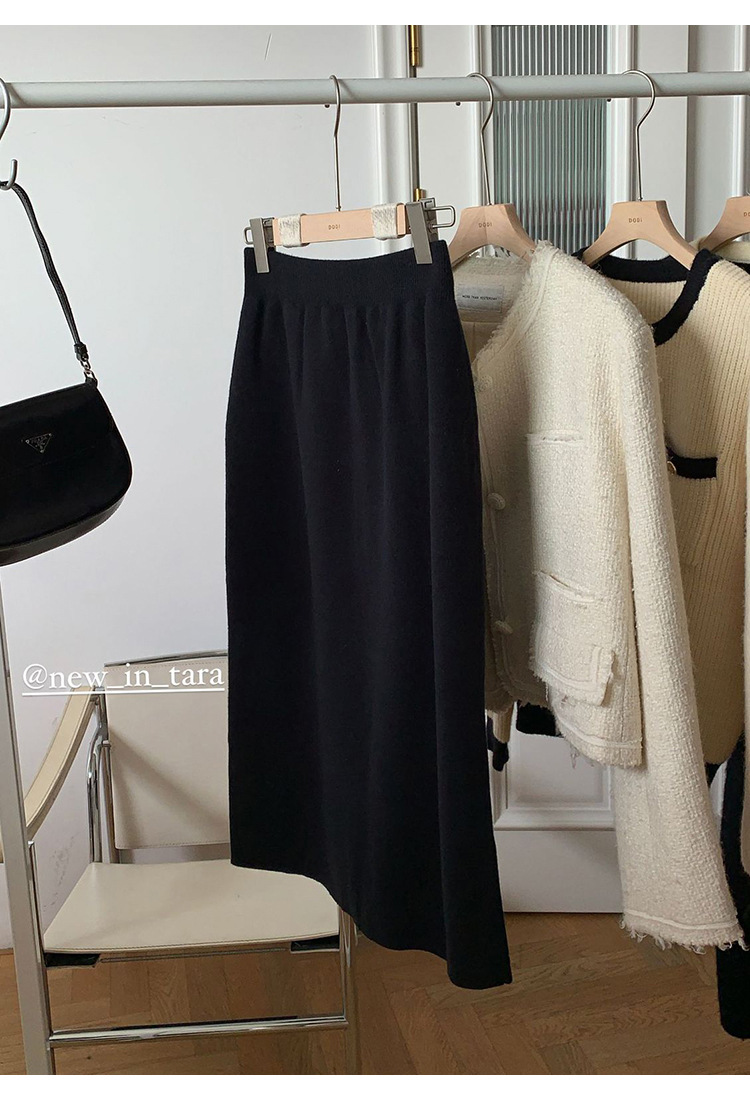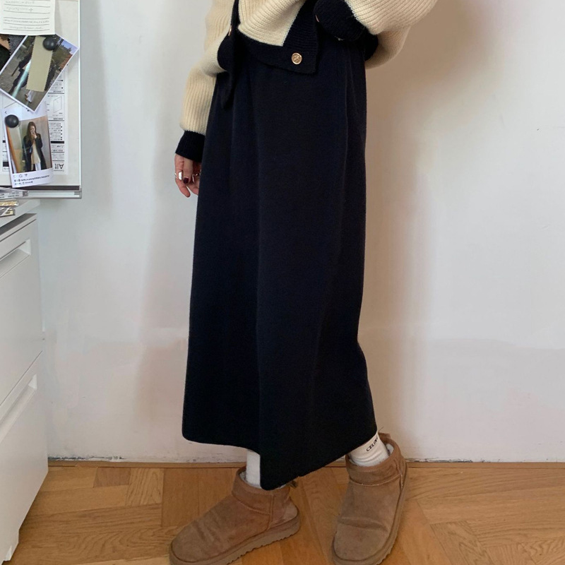 올매치 느슨한 중장 니트 스커트 여자 2024 가을 겨울 코리안 스타일 레트로 하이 웨이스트 스트레이트 하프 길이 스커트 트렌디스토어 가기