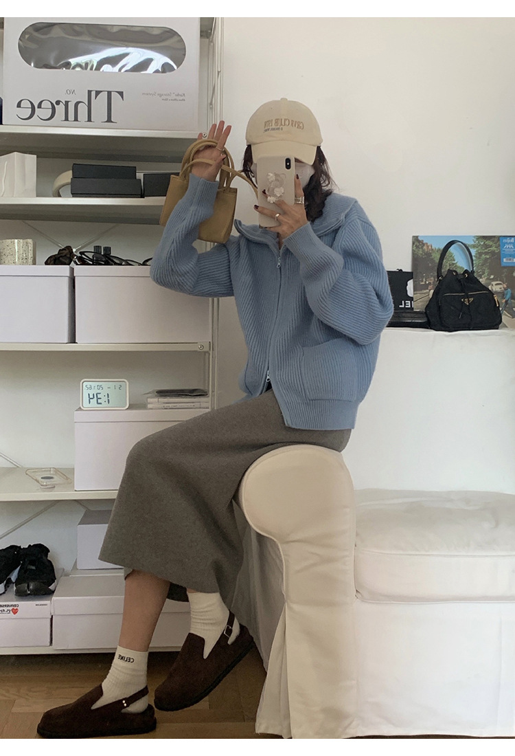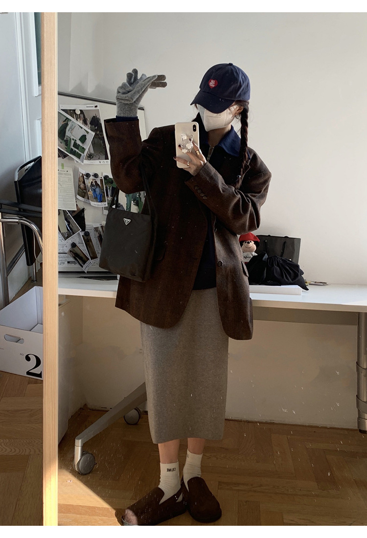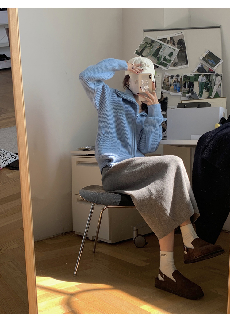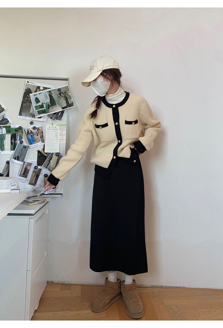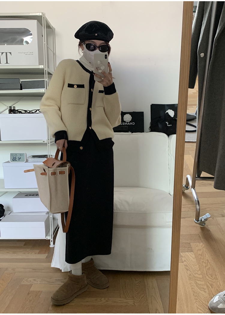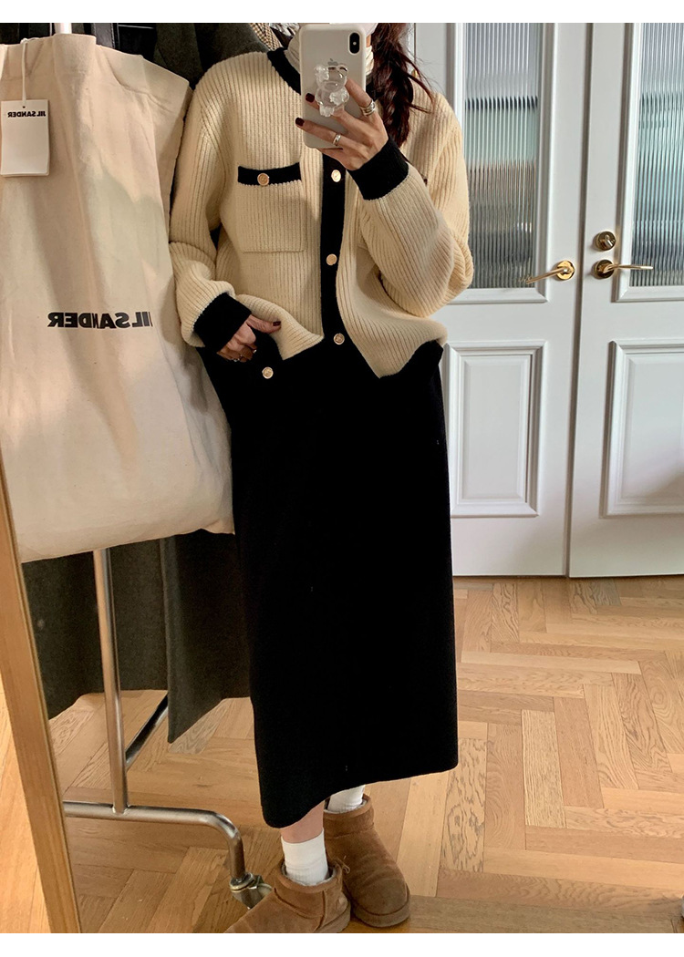 올매치 느슨한 중장 니트 스커트 여자 2024 가을 겨울 코리안 스타일 레트로 하이 웨이스트 스트레이트 하프 길이 스커트 트렌디스토어 가기