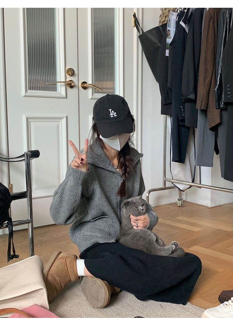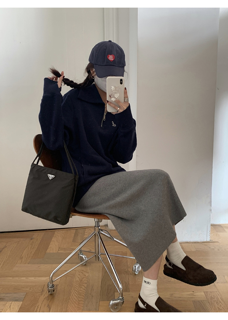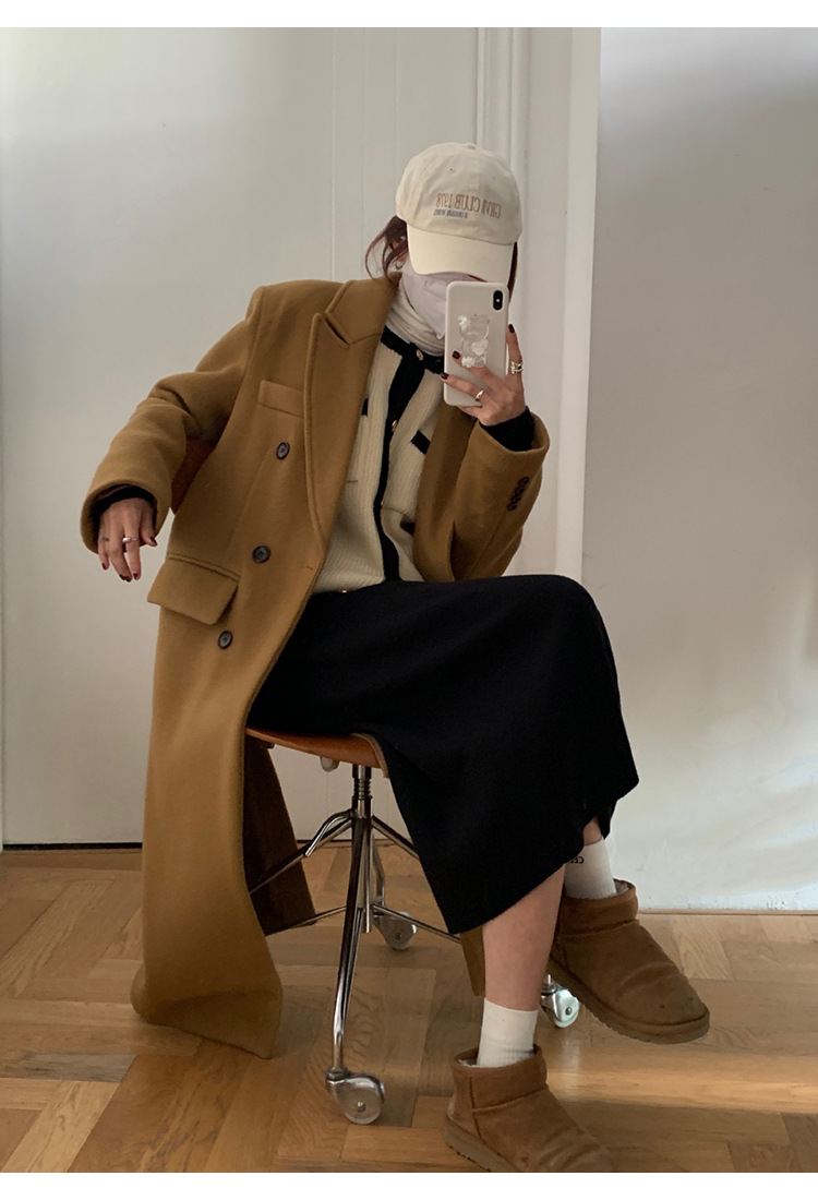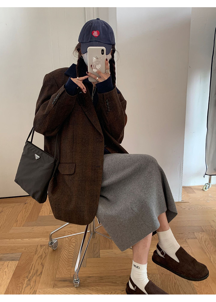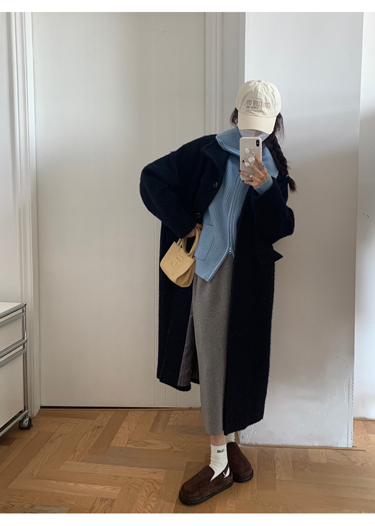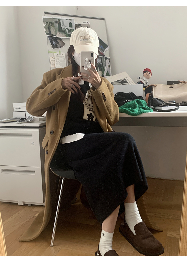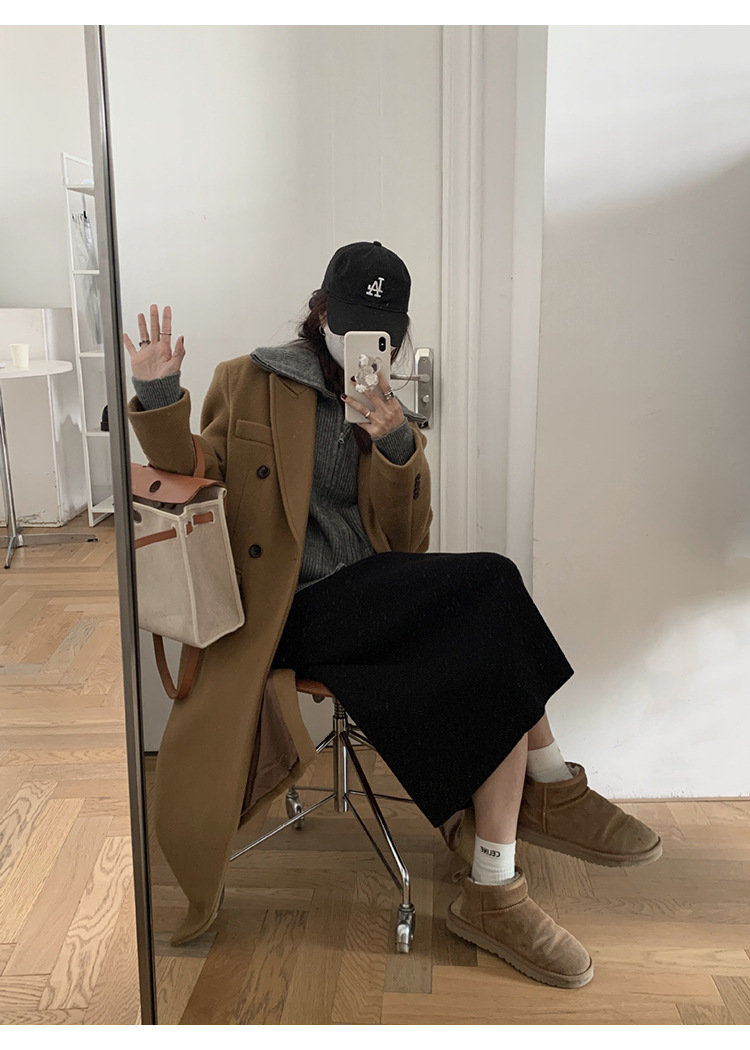 올매치 느슨한 중장 니트 스커트 여자 2024 가을 겨울 코리안 스타일 레트로 하이 웨이스트 스트레이트 하프 길이 스커트 트렌디스토어 가기