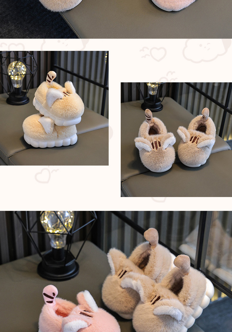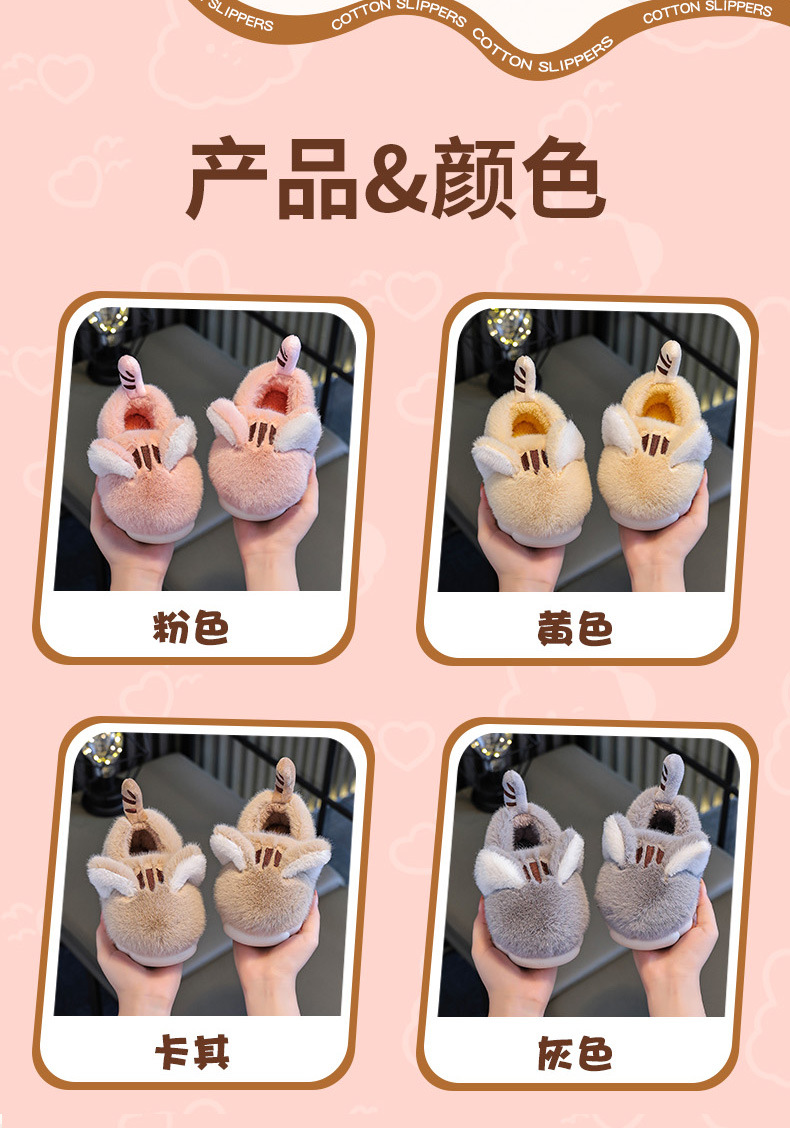 어린이 면화 신발 두꺼운 새로운 만화 귀여운 모피 슬리퍼 어린이 실내 벨벳 두꺼운 밑창 미끄럼 방지 가방 모피 슬리퍼