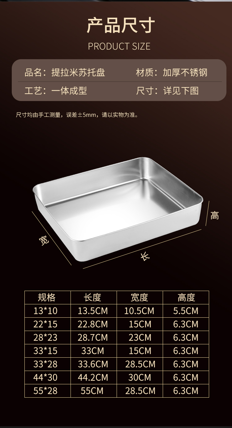 티라미수 아이스 파우더 트레이 컨테이너 박스 스테인레스 스틸 플레이트 직사각형 사각형 플레이트 그물 레드 케이크 호닝 비문스토어 가기