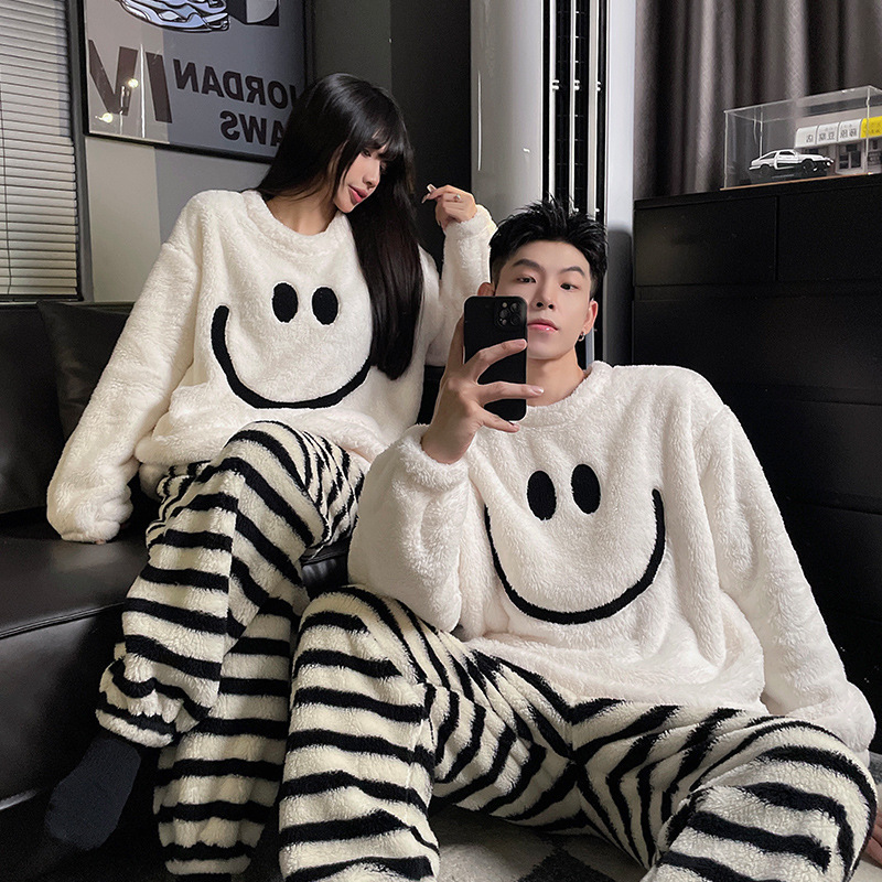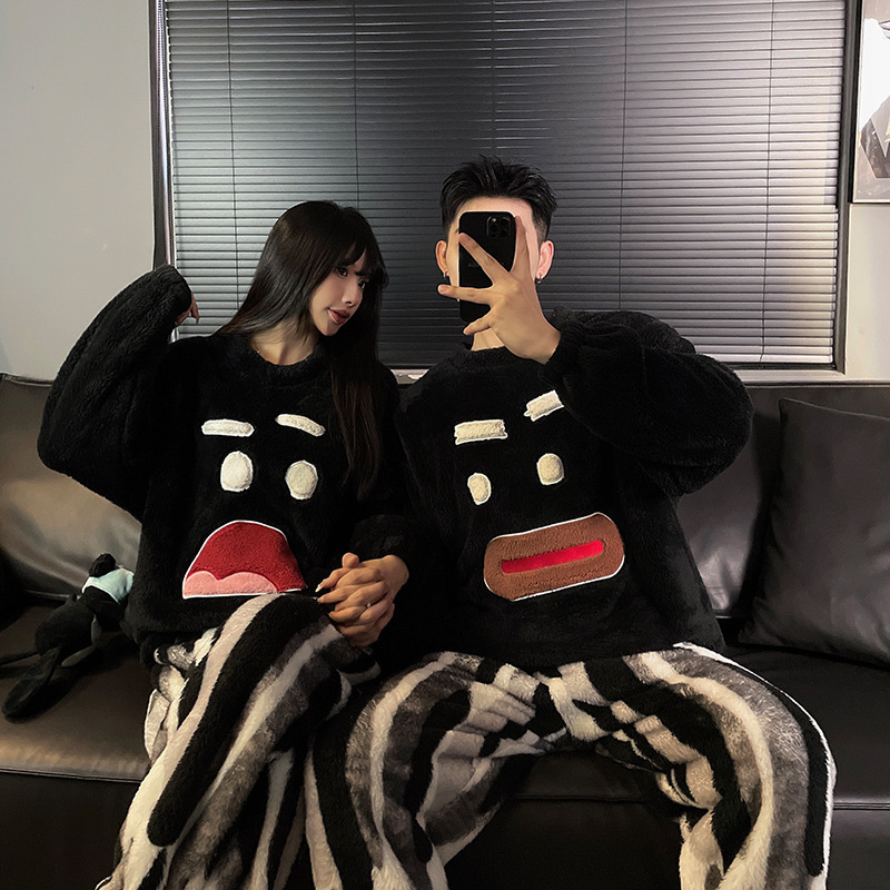 산호 양털 커플 잠옷 여성의 가을과 겨울 기모 두꺼운 남자의 겨울 외주 일본 가정 옷 세트