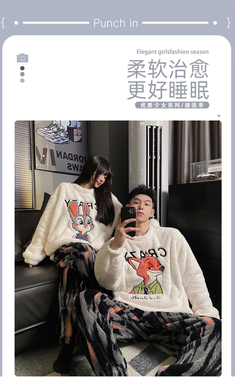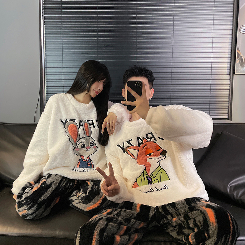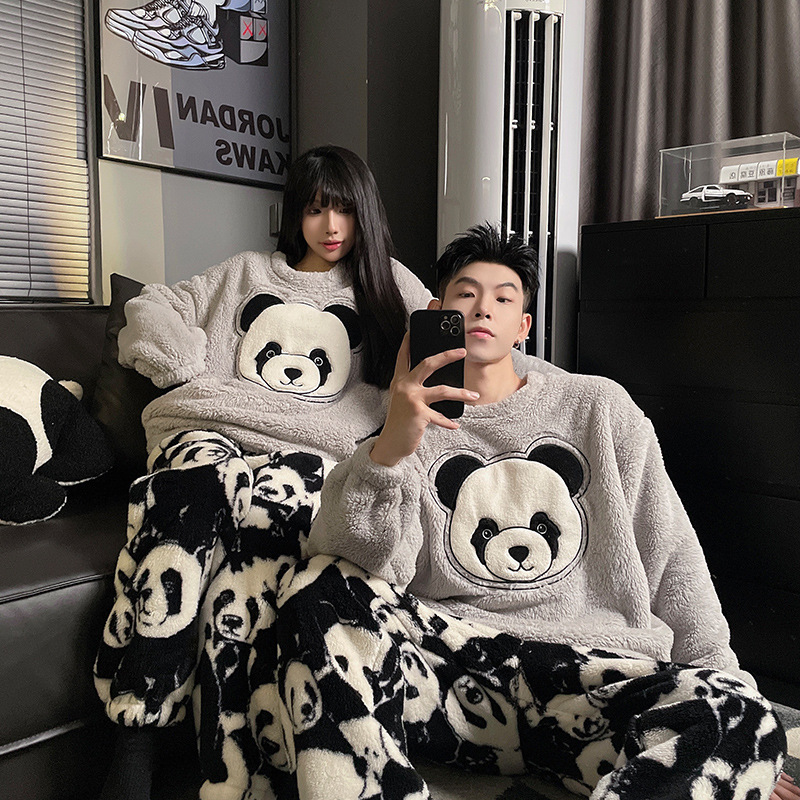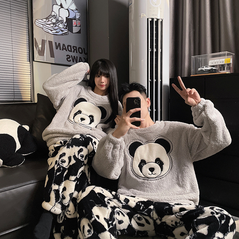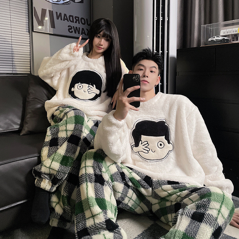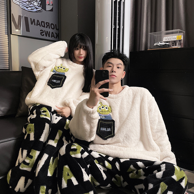 산호 양털 커플 잠옷 여성의 가을과 겨울 기모 두꺼운 남자의 겨울 외주 일본 가정 옷 세트스토어 가기