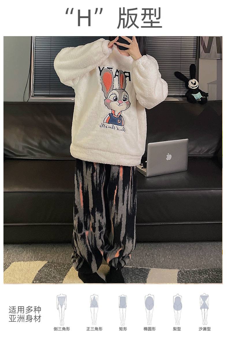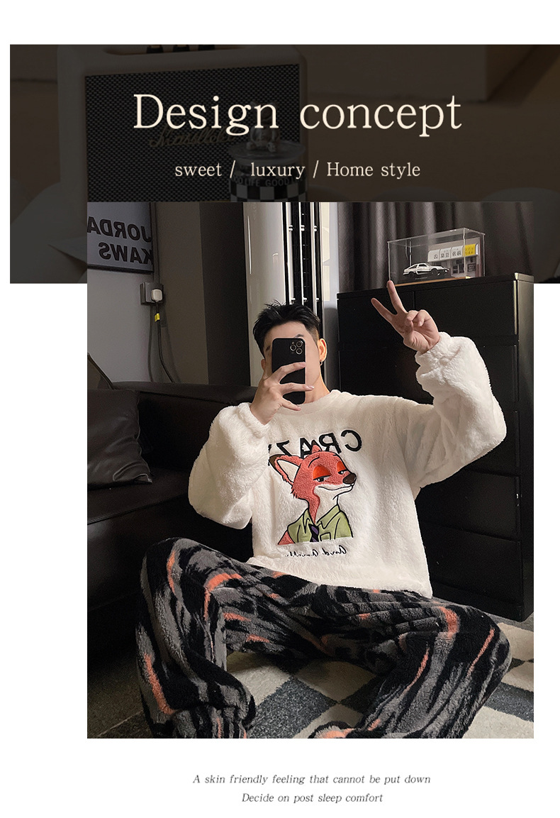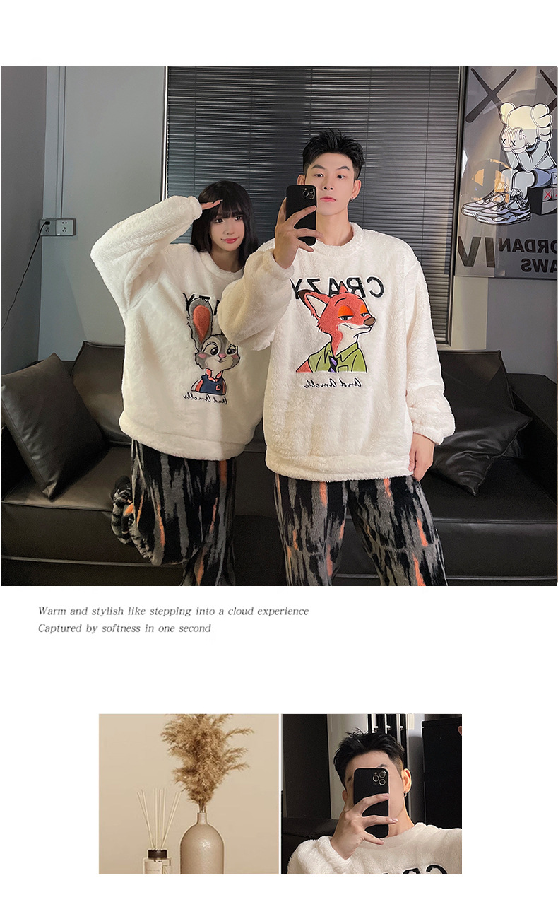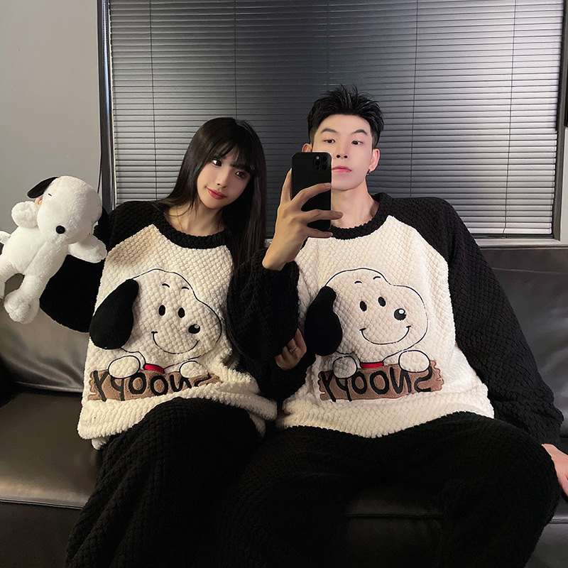 산호 양털 커플 잠옷 여성의 가을과 겨울 기모 두꺼운 남자의 겨울 외주 일본 가정 옷 세트스토어 가기